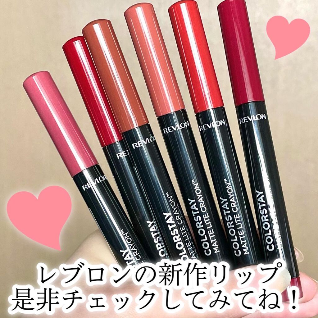 - スルスル描けて、空気のような、軽いつけ心地!超軽*¹!クレヨンリップ 『レブロン カラーステイ マット ライト クレヨン』が登場。 1.するする描けて、ふわっと軽い! まるで天使の羽⁉ 極軽の仕上がりを叶える、ライト インフュージョン コンプレックス*² 処方 2.マスクに、つきにくい! ピタッと密着。サラサラなつけ心地。 3.肌になじむ、自然なマット仕上り! くすみ系カラー&自然なマット質感で、こなれた唇に。 ・ スリムで塗りやすい、クレヨンリップ ・ ほんのりバニラの香り ・ シャープナー付き「くり出し式」 *¹ 従来自社リップスティック製品より30%減の軽さ(同じ塗布方法において) *² コンディショニング成分:マンゴー種子油、シリカ、カプリリルメチコン たくさんのご応募お待ちしております♪