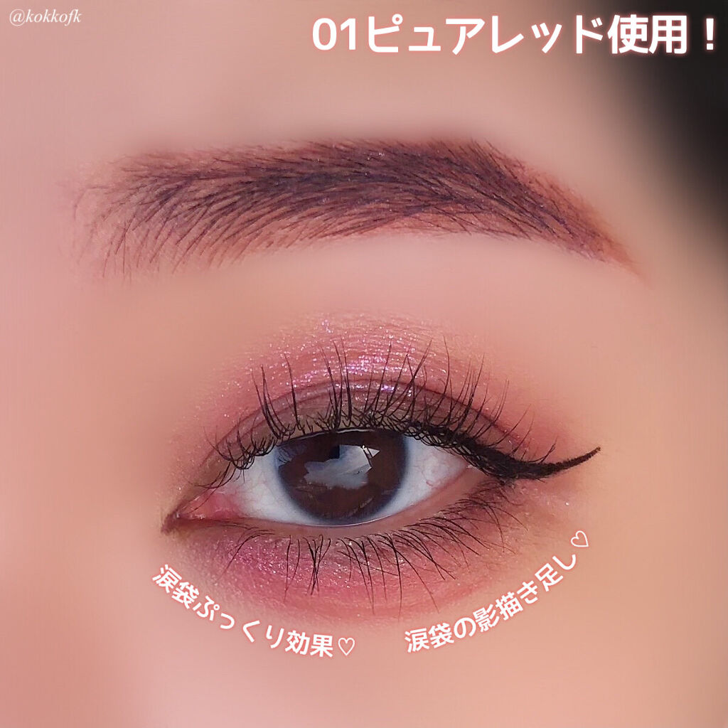 - ふたえ強調・涙袋の影・アイプランパー効果(※)に使える 激細筆の目元用透けルージュライナー 自然でリアルな血色を叶える、絶妙な透け発色ライナー♥ まるで目元にルージュを塗ったかのように血色感を与え、かわいい印象に仕上がります。 描いた線が太くならないよう、筆を根元から細くして 描きやすい距離と適度なコシになるように、短い筆に仕上げました。 汗・皮脂・こすれに強く、朝描いたラインも長時間キープされます。 (※メイクアップ効果による)