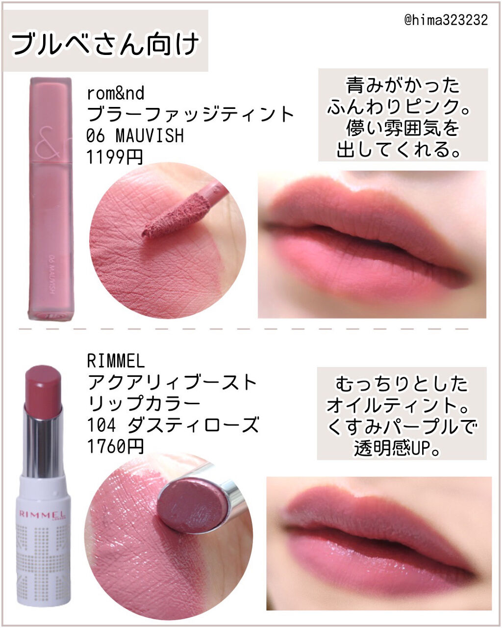 うち、ブルベなんだけど、ロムアンドのふんわりピンクめっちゃ可愛いんだけど!?😳😳 しかも、安い!!