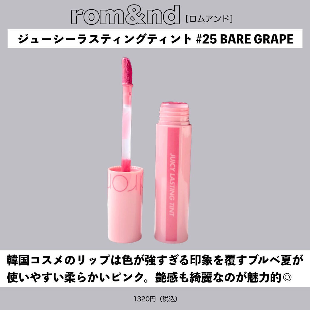 『ロムアンドの新色が万能すぎてどうかしてる件。』ロムアンドの大人気シリーズ『ジューシーラスティングティント』の夏の新色がかつてないほど使いやすいのです📝4色全部ヌード系で今までの既存色が発色良すぎて使うのが少し難易度高いなナチュ...