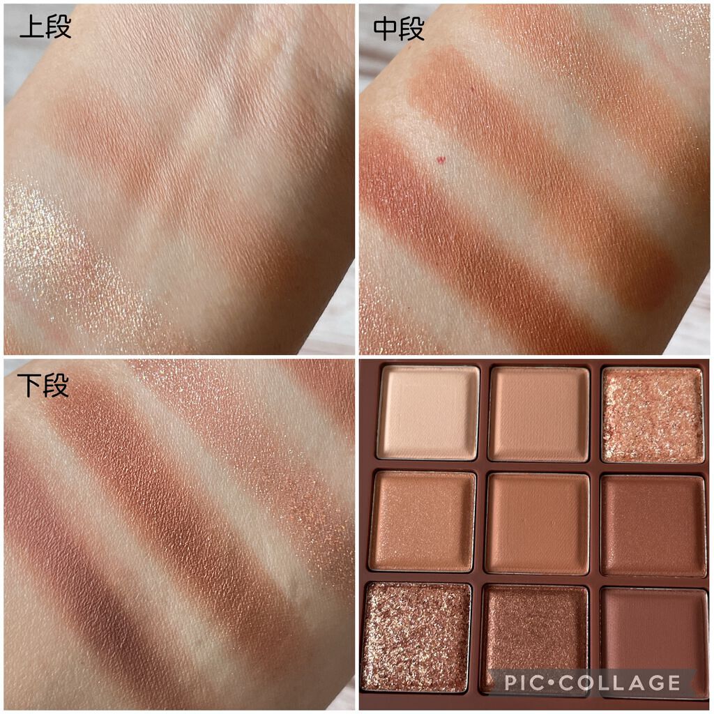 マット・グロウパール・グリッターボム3つのテクスチャーが入った9色のパレットです🤎 デイジークのパレットは濃いメイクが好きなわたしには淡い配色の物が多かったので、初めての購入だったのですが(๑° ꒳ °๑)このパレットは🎨カラーも粉質も大満足💕 他のカラーだけでもじゅうぶんに楽しめる大人も使える甘ーい🤎ブラウンチョコレートパレットでした♡