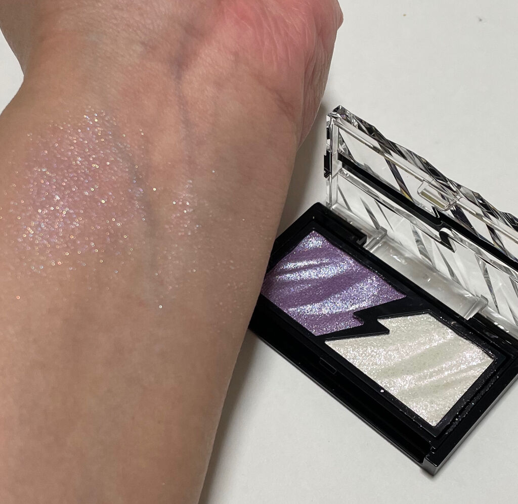 - 質感の違う2つの輝きで火花がクラッシュしたような発光感のある目元印象をつくるアイシャドウ。 まぶたにピタッと密着して、大粒ラメも落ちにくい処方設計。 繊細なカラーパールがきらめくエレクトリカルカラーと存在感のある大粒グリッターでまぶしい輝きを演出するフラッシュグリッターの2つの質感を掛け合わせて、輝き自由自在。 目元以外にも頬や鼻筋のハイライトに使える。