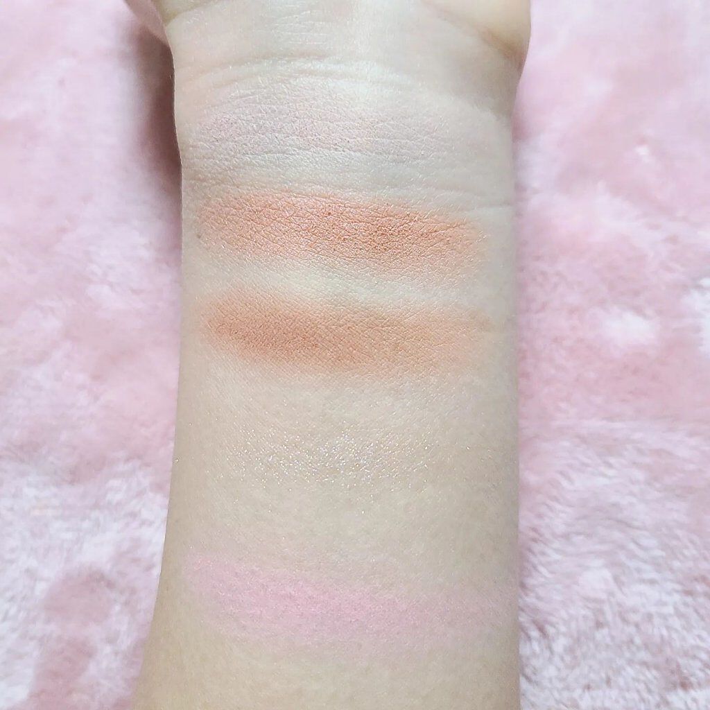 - <001 スウィートピンク> タルク、マイカ、グンジョウ、トリ(カプリル酸/カプリン酸)グリセリル、シリカ、窒化ホウ素、ステアロイルオキシステアリン酸オクチルドデシル、メチルプロパンジオール、ミリスチン酸Mg、マンガンバイオレット、ジメチコン、ミネラルオイル、プロパンジオール、赤酸化鉄、ヒドロキシプロピルビスパルミタミドMEA、ステアリン酸ジメチコノール、黄酸化鉄、ステアリン酸Mg、黒酸化鉄、トリエトキシカプリリルシラン、酸化チタン、メチコン、水 <002 ハローピーチ> マイカ、タルク、ホウケイ酸(Ca/Al)、酸化チタン、シリカ、ジエチルヘキサン酸ネオペンチルグリコール、フェニルトリメチコン、赤酸化鉄、グンジョウ、リンゴ酸ジイソステアリル、ヘキサ(ヒドロキシステアリン酸/ステアリン酸/ロジン酸)ジペンタエリスリチル、ネオペンタン酸イソステアリル、ステアロイルオキシステアリン酸オクチルドデシル、ミリスチン酸Mg、マンガンバイオレット、メチルプロパンジオール、ジメチコン、マカデミア種子油、ポリブテン、ステアリン酸Mg、プロパンジオール、トリエトキシカプリリルシラン、酸化スズ、メチコン、水 <003 ベイクド ジンジャー> タルク、マイカ、グンジョウ、シリカ、マンガンバイオレット、酸化チタン、トリ(カプリル酸/カプリン酸)グリセリル、赤酸化鉄、窒化ホウ素、黄酸化鉄、黒酸化鉄、ミリスチン酸Mg、ミネラルオイル、ステアロイルオキシステアリン酸オクチルドデシル、メチルプロパンジオール、ジメチコン、プロパンジオール、黄色4号、ヒドロキシプロピルビスパルミタミドMEA、ステアリン酸ジメチコノール、ステアリン酸Mg、トリエトキシカプリリルシラン、水 <004 グラムローズ> ホウケイ酸(Ca/Al)、タルク、ホウケイ酸(Ca/チタン)、マイカ、ジエチルヘキサン酸ネオペンチルグリコール、酸化チタン、フェニルトリメチコン、シリカ、ミリスチン酸Mg、リンゴ酸ジイソステアリル、ヘキサ(ヒドロキシステアリン酸/ステアリン酸/ロジン酸)ジペンタエリスリチル、ネオペンタン酸イソステアリル、ステアロイルオキシステアリン酸オクチルドデシル、グンジョウ、ステアリン酸Mg、メタクリル酸メチルクロスポリマー、メチルプロパンジオール、ポリブテン、プロパンジオール、酸化スズ、ジメチコン、ラウロイルリシン、マンガンバイオレット、赤酸化鉄、トリエトキシカプリリルシラン、黄酸化鉄、メチコン、水