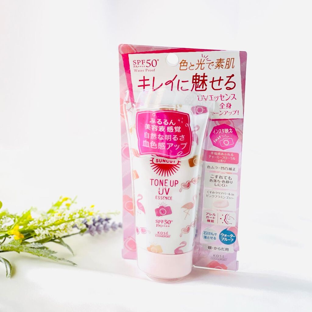 UVカット効果に加え、 肌をキレイに魅せるトーンアップ効果のある日焼け止め☀️ ライトアップUVエッセンスは、肌の色を問わず使えるノーカラータイプ🤍 新開発のシークレットパール配合で、凹凸をカバーしながら繊細なツヤと透明感をプラスしてくれます! トーンアップUVエッセンス ピンクフラミンゴは、ほんのりピンク色で血色感をほんのりアップしてくれます💕 くすみクリアパールで、お肌の色ムラや凹凸を補正してくれる効果も期待できます♪ どちらも伸びが良くて、肌に馴染みやすい色合い! 時間が経っても白浮きしないのが嬉しいです😌 香りも良くて、強すぎないので使いやすいです♪