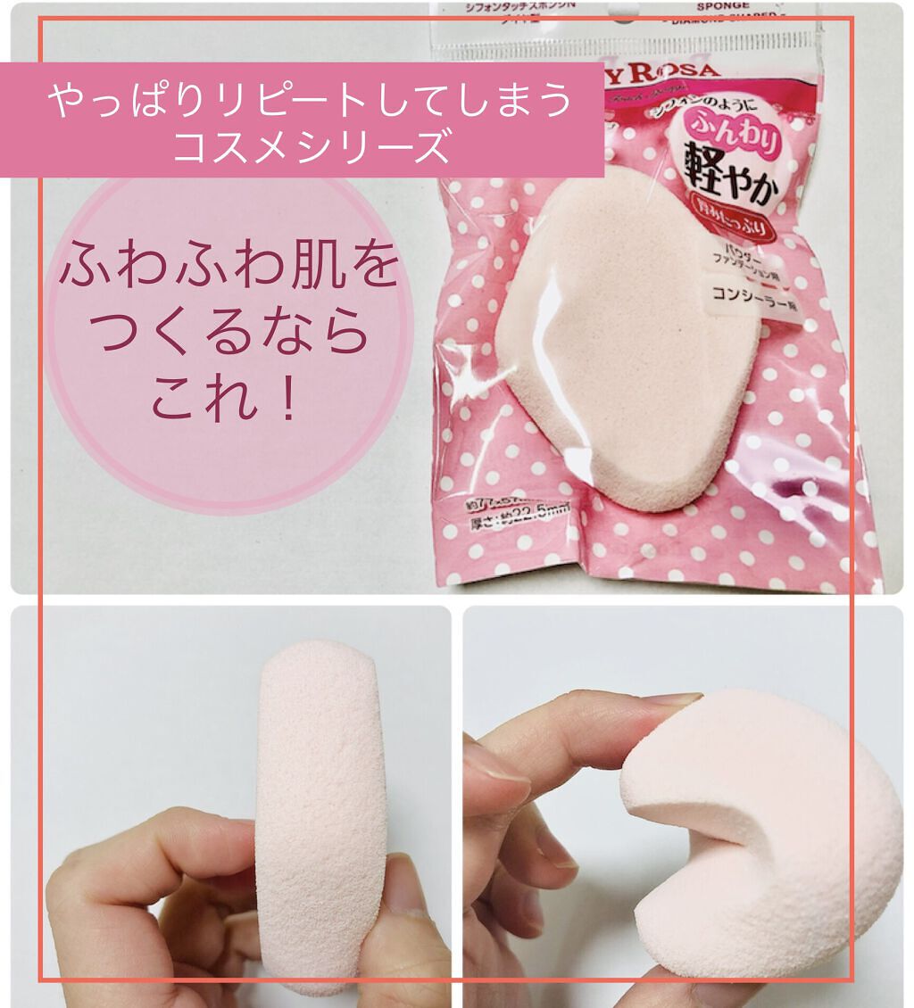 \ふわっふわ質感のメイクスポンジ/ロージーローザシフォンタッチスポンジNダイヤ型1個入り私が昔々から溺愛しているロージーローザのシフォンタッチスポンジ💓💓大きさも使いやすく肌当たりもよくふかふかで使いやすいです😊コンシーラーを塗布したりベース...