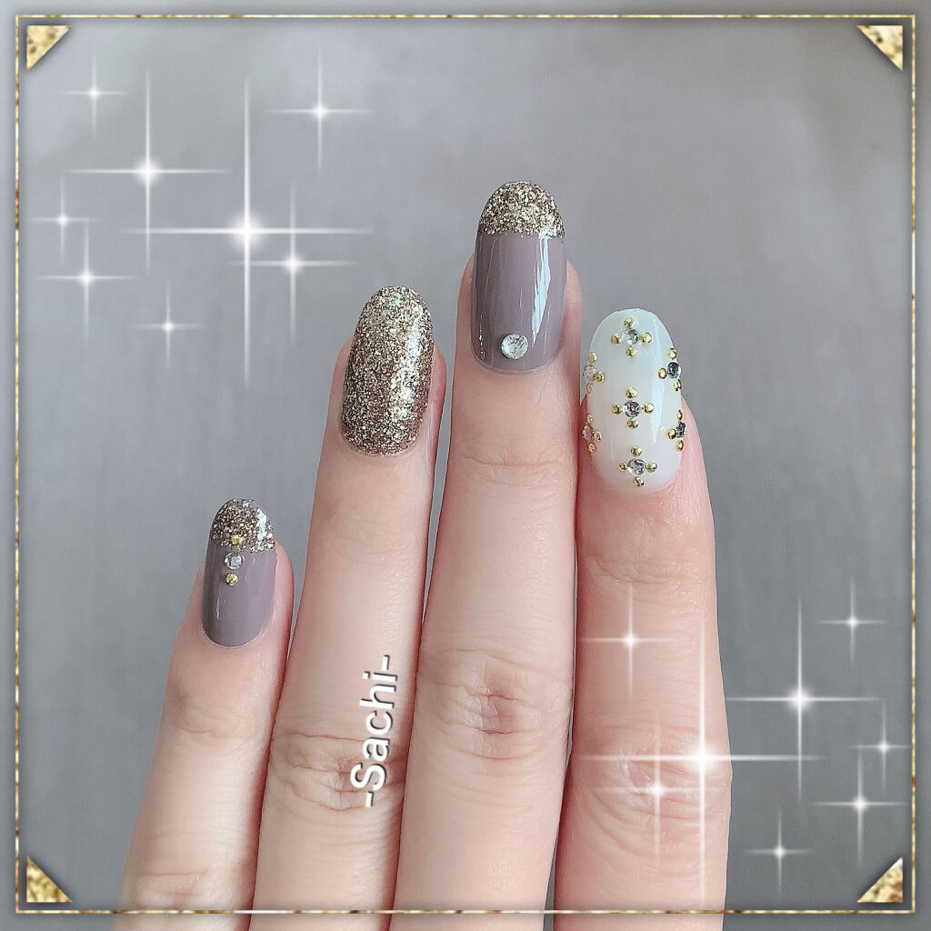 ギラギラだ!!! 人差し指可愛い〜💕 爪の先っぽだけギラギラつけるの主張しすぎないでいいね!!天才🎓✨👏