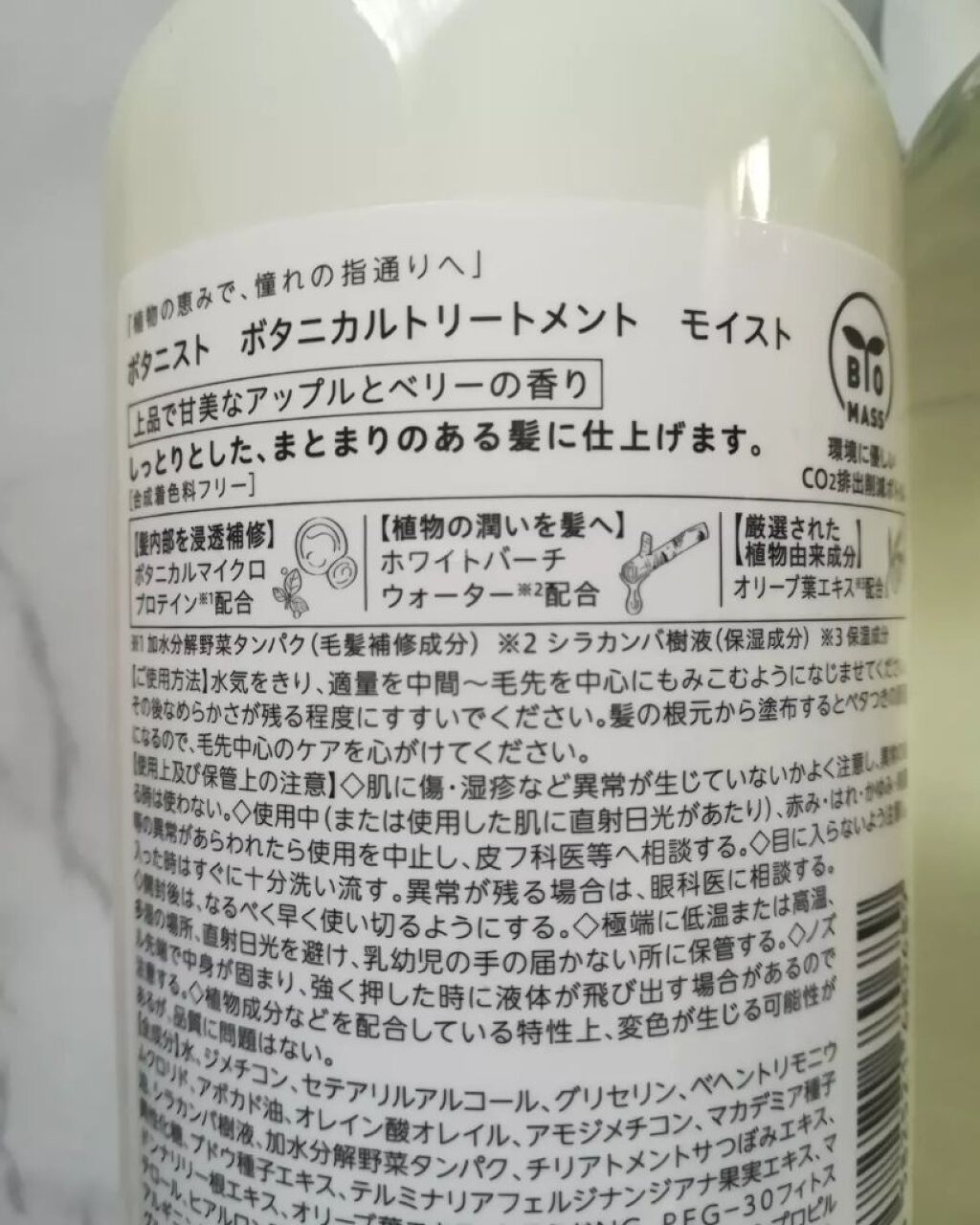 - リニューアル発売 しっとりまとまる髪へ シャンプー:アプリコットとジャスミンの香り トリートメント:アップルとベリーの香り BOTANISTらしい白と黒のロゴを生かし、よりクリーンでシンプルなデザイン 非常に細かい粒子の植物由来たんぱく質【ボタニカルマイクロプロテイン[*1]】を新配合し、今まで届かなかった髪の内部まで浸透しダメージを補修。なめらかでツヤやかな髪へと導きます。 *1加水分解野菜タンパク(毛髪補修成分) □こだわりの植物由来成分配合 □やさしい弱酸性のせっけん系成分を配合 □ダブルフレグランスを採用 □天然の洗浄剤とも言われるソープナッツ [*8]やサボンソウ [*9]を配合 □シリコンフリー(トリートメント:モイスト、スムース、ダメージケアを除く)、合成着色料フリー リニューアルで更にフリー項目追加:パラベンフリー、サルフェートフリー(シャンプーのみ)
