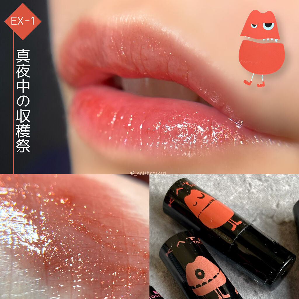 - 落ちにくさも美発色もよくばりたい、つけたての色が長時間持続する人気の口紅リップモンスター。 唇から蒸発する水分を活用して密着ジェル膜に変化する独自技術※で、つけたての色が長時間持続。 高発色&保湿。 ※当社独自の色持ち技術 ■花火のようにまぶしくきらめく 繊細なラメが際立つ限定色 EX-6 ピンクカラー×青ラメ【ロケット花火流星群】 EX-7 オレンジカラー×黄&緑ラメ【100万発の線香花火】 EX-8 レッドカラー×緑ラメ【打ち上げ花火ブランコ】 ■深みレッド系カラーの限定色 EX-9 戦慄の喜笑 (限定色) EX-10 狂気の怒号 (限定色) 【2025クリスマスコフレ】 落ちにくいリップモンスターから、唇の血色感を底上げする ホリデーシーズン限定の熱感ニュアンスベージュ系カラー登場。 EX-11 紅煙宿る贈り物(限定色):ボルドーベージュ系 EX-12 盗まれた1224mの星光(限定色):キャメルベージュ系