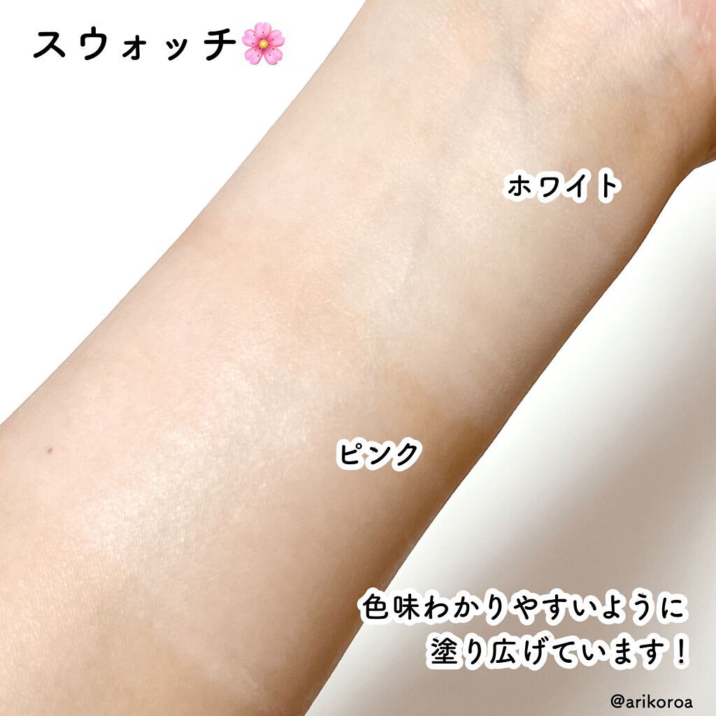 - <ホワイト> 水、酸化亜鉛、イソノナン酸イソトリデシル、BG、水添ポリイソブテン、酸化チタン、ジメチコン、シクロペンタシロキサン、DPG、シリカ、PEG-50水添ヒマシ油、セスキイソステアリン酸ソルビタン、ポリヒドロキシステアリン酸、ポリアクリルアミド、セテス-20、1,2-ヘキサンジオール、フェノキシエタノール、(C13,14)イソパラフィン、シクロメチコン、含水シリカ、セチルリン酸K、エチルヘキシルグリセリン、水酸化Al、ハイドロゲンジメチコン、ラウレス-7、グリチルリチン酸2K、酸化鉄、ステアロイルグルタミン酸2Na、EDTA-2Na、合成フルオロフロゴパイト、セラミド3、スクワラン、ヒアルロン酸Na、ポリクオタニウム-51、サクシノイルアテロコラーゲン <ピンク> 水、酸化亜鉛、イソノナン酸イソトリデシル、BG、水添ポリイソブテン、酸化チタン、ジメチコン、シクロペンタシロキサン、DPG、ヒアルロン酸Na、セラミド3、サクシノイルアテロコラーゲン、ポリクオタニウム-51、スクワラン、合成フルオロフロゴパイト、シリカ、PEG-50水添ヒマシ油、セスキイソステアリン酸ソルビタン、ポリヒドロキシステアリン酸、ポリアクリルアミド、セテス-20、(C13,14)イソパラフィン、シクロメチコン、含水シリカ、セチルリン酸K、酸化鉄、水酸化Al、ハイドロゲンジメチコン、ラウレス-7、グリチルリチン酸2K、ステアロイルグルタミン酸2Na、EDTA-2Na、エチルヘキシルグリセリン、1,2-ヘキサンジオール、フェノキシエタノール