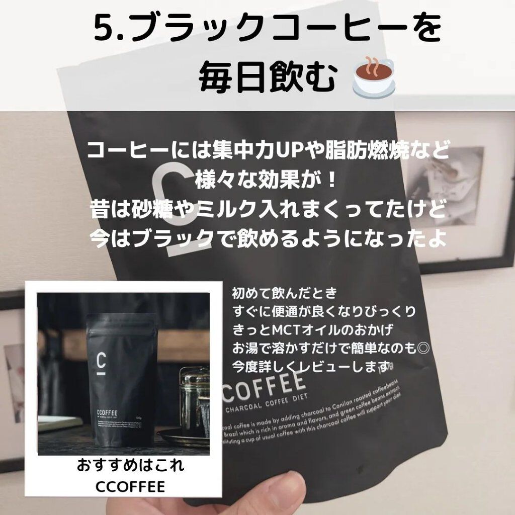 このチャコールコーヒー「C COFFEE」には☑驚きの油吸着力の伊那赤松妙炭☑燃焼運動サポートのクロロゲン酸☑素早くエネルギー分解を促すMCTオイルなど嬉しい話題の成分が入ってるのです♡ 初めてC COFFEE飲んだとき砂糖ではない甘さを感じてびっくり!普段コーヒー飲み慣れてない人でも飲めそう!! 少しとろみ感は感じたけど、MCTオイルのせいかな?と勝手に解釈してたから普通に美味しくいただきました♡