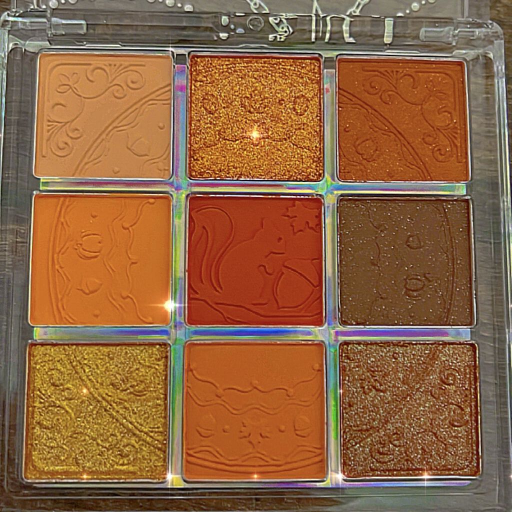 ☆ZEESEAクォーツ9色アイシャドウパレットドリームランドアイシャドウJ12ドライローズティンカーベルデザインの美しいアイシャドウパレット🎨型押しも美しい(人´∀`*)使っていくうちに削れていくのが寂しい😞今回は左上のベージュをアイホールに...