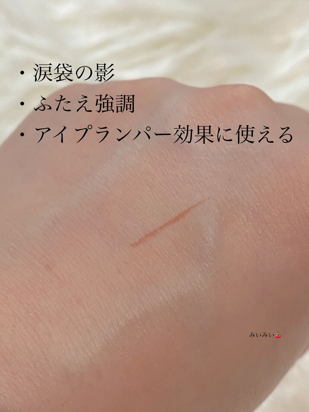 - ふたえ強調・涙袋の影・アイプランパー効果(※)に使える 激細筆の目元用透けルージュライナー 自然でリアルな血色を叶える、絶妙な透け発色ライナー♥ まるで目元にルージュを塗ったかのように血色感を与え、かわいい印象に仕上がります。 描いた線が太くならないよう、筆を根元から細くして 描きやすい距離と適度なコシになるように、短い筆に仕上げました。 汗・皮脂・こすれに強く、朝描いたラインも長時間キープされます。 (※メイクアップ効果による)