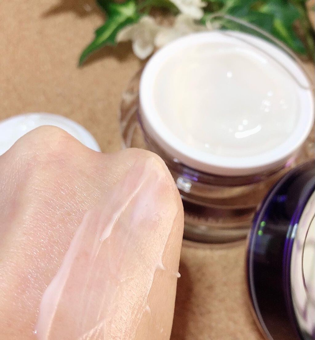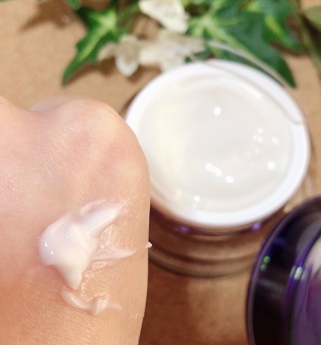 ベトつきも少なく、スーッとお肌に馴染んでしっかり保湿してくれます😄✨ 柔らかめのクリームなので、朝のオールインワンとして使ってもいい感じ🥰 伸びがいいから少量で🆗👌 内フタにスパチュラもセットされているから衛生的にも使いやすさもいい💮 ツヤとハリに効果があるエイジングクリームなので、私の「たるみ毛穴」もこのクリームで改善してくれるとうれしーなっ🎵😍🎵
