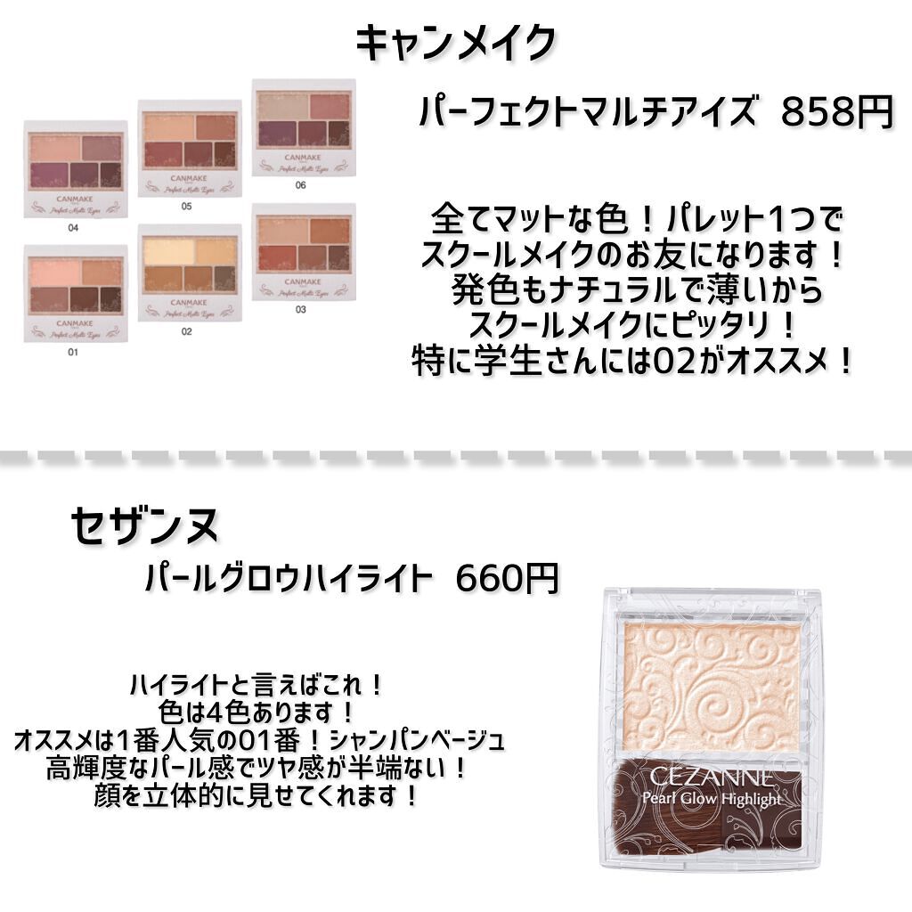 バレない!学生さんにオススメのスクールメイクこんにちはmituです!(*^。^*)今回は学生さんにオススメのスクールメイク商品を紹介して行きます!ベースメイクはキャンメイク、BBIAがオススメ!アイブロウはKATE、ハイライトはセザンヌがおす...