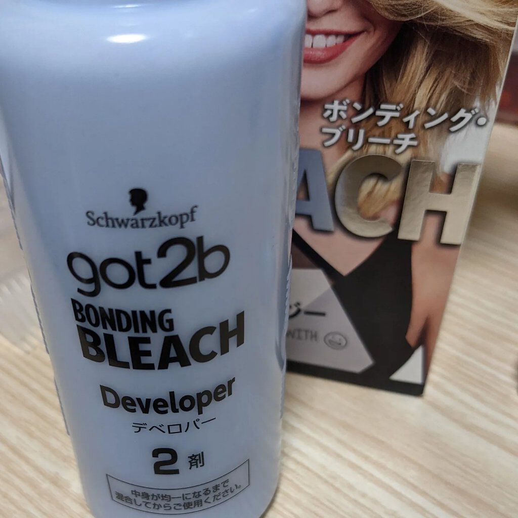 サロンで話題の傷みにくいセルフブリーチ剤《got2bボンディング・ポイントブリーチ》使ってみたよ🎵 使用量を調整出来る2包タイプ✨混ぜやすいようにカップやスティックがセットになってるのは嬉しいね😆 前髪や耳周りなど、...