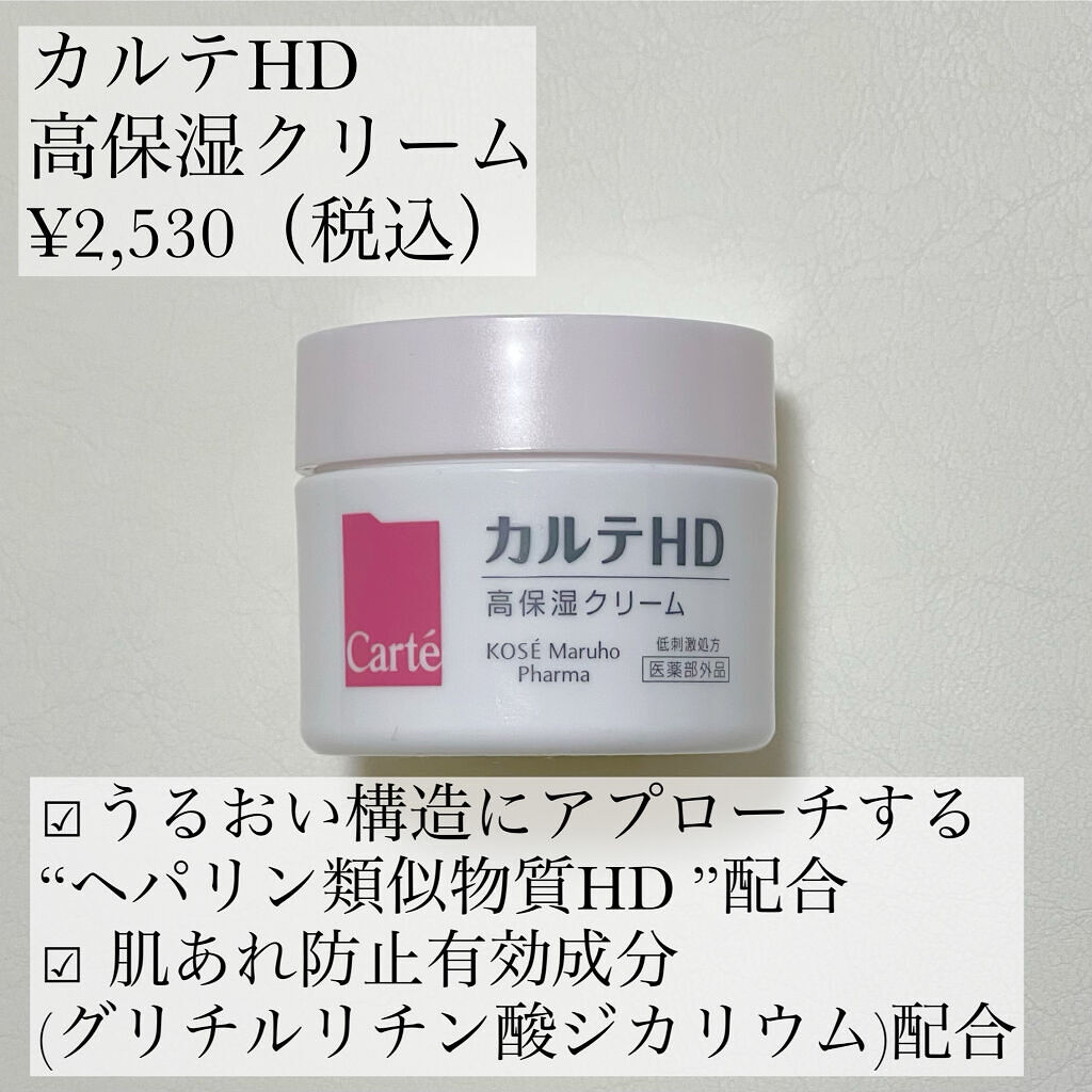 - 【高保湿クリーム】 コーセーとマルホの合弁会社コーセーマルホファーマから発売された「カルテHD」。マルホから唯一供給を受けた「ヘパリン類似物質HD」を配合。 コクのあるなめらかな感触、濃密なうるおいを密閉して長時間持続する高保湿クリーム。 あれた肌を包み込むようになじむコクのあるなめらかなテクスチャー。エモリエントオイルとワセリンの配合を絶妙なバランスにしたことで、べたつかないのに長時間しっかりとしたうるおい効果を実感できます。 <販売名:HDクリーム>