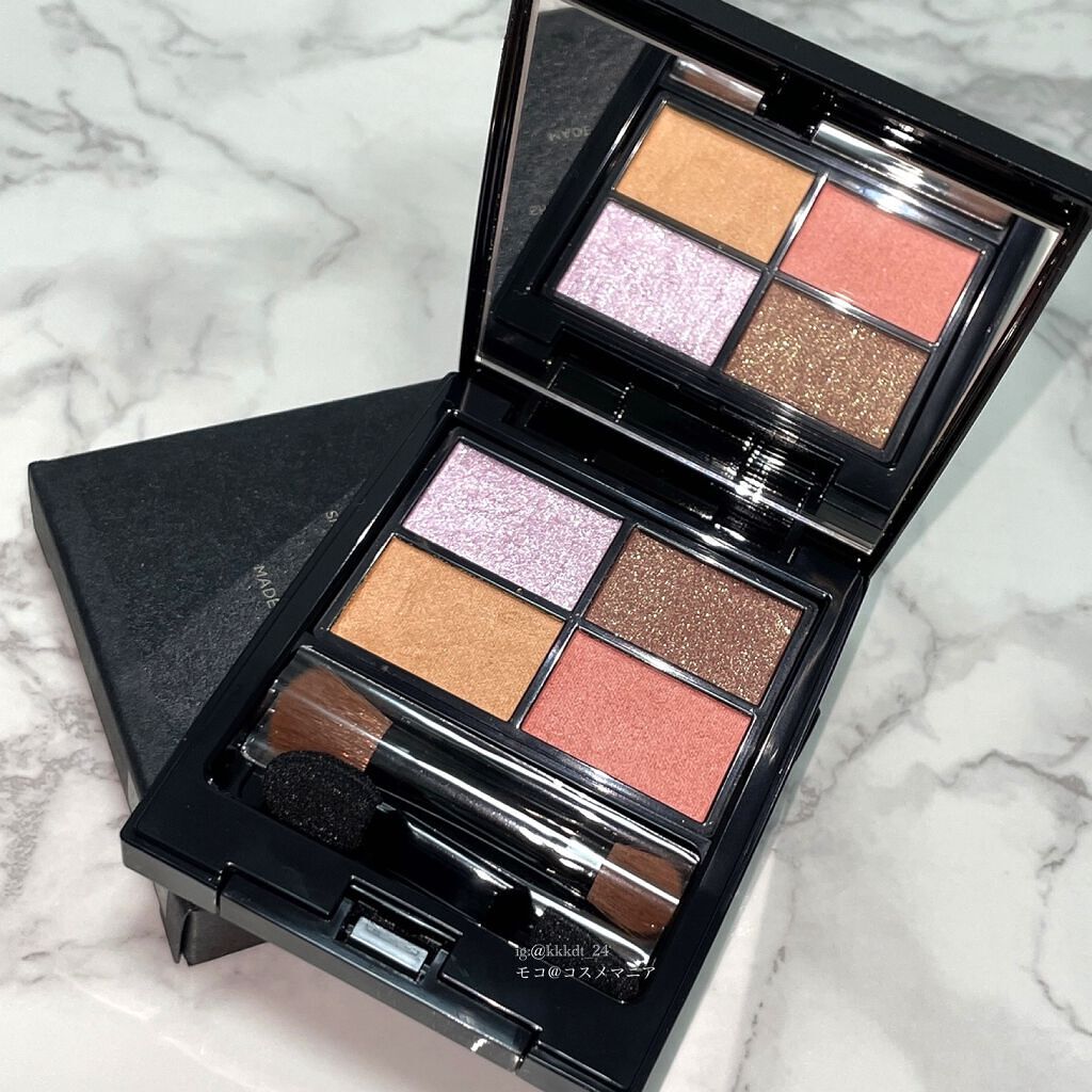 - 敏感肌のまぶたをケアしながら、美しく彩る。ミネラルの色と光を重ねて、メイクするたび自分らしく。 着眼点は「大人のくすみ※1やすい、まぶた」。 敏感になってしまった肌に対し、8種の美容成分※2がうるおいを与えながら丁寧にケアします。 なりたい表情をメイクで叶えながら、健やかな透明感※3のあるまぶたへ。 大人の目もとを上品なツヤと発色で彩る4色アイカラーは、まぶたに吸い付くような質感で、澄んだ眼差しを演出します。 心のままに色を重ねて、なりたい自分を描いて。 ※1 乾燥によるもの ※2 保湿成分:ヒアルロン酸Na、ポリクオタニウム-61、シロキクラゲ多糖体、アシタバ葉/茎エキス、クダモノトケイソウ果実エキス、モモ花エキス 整肌成分:グリチルレチン酸ステアリル、グリチルリチン酸2K ※3 メイクアップ効果による