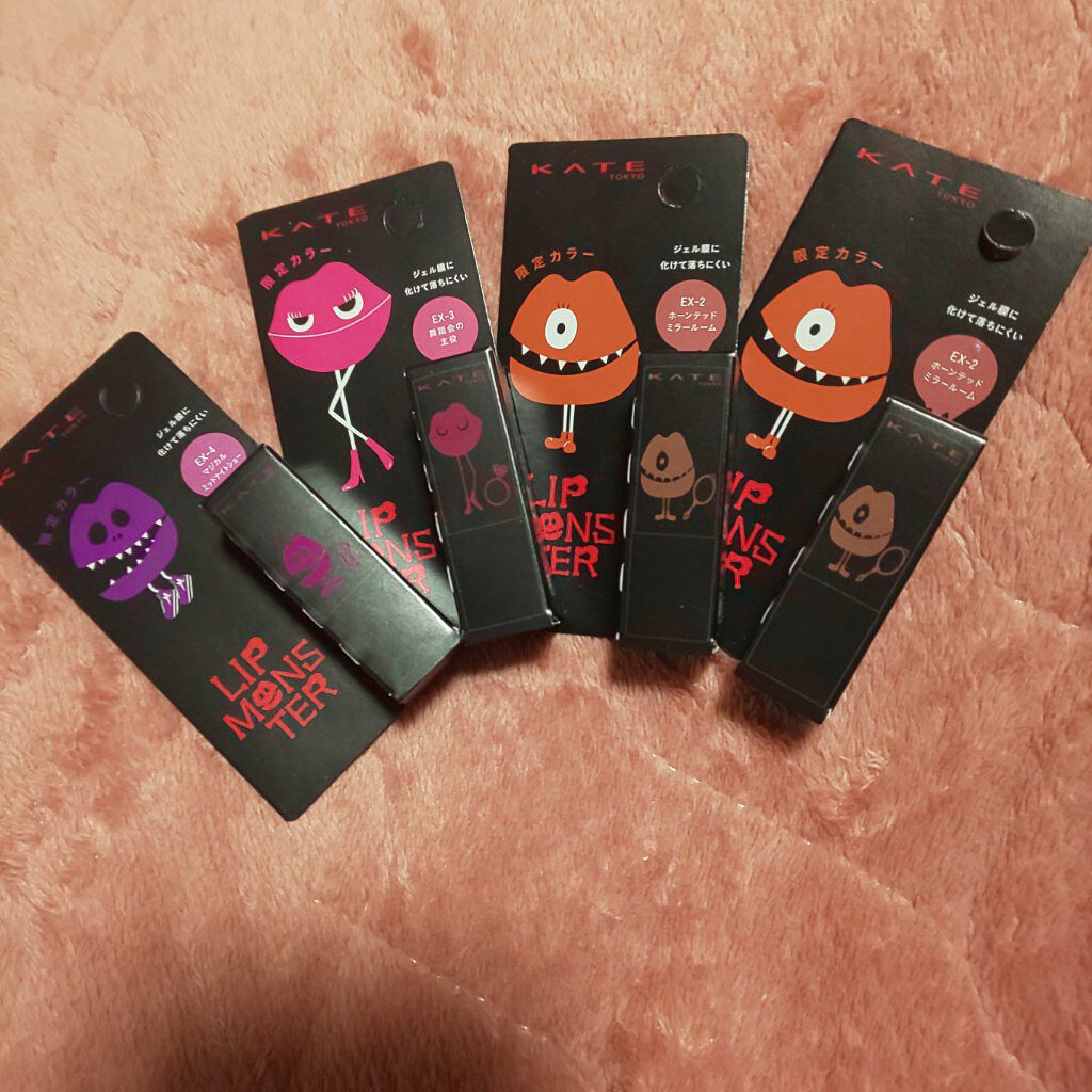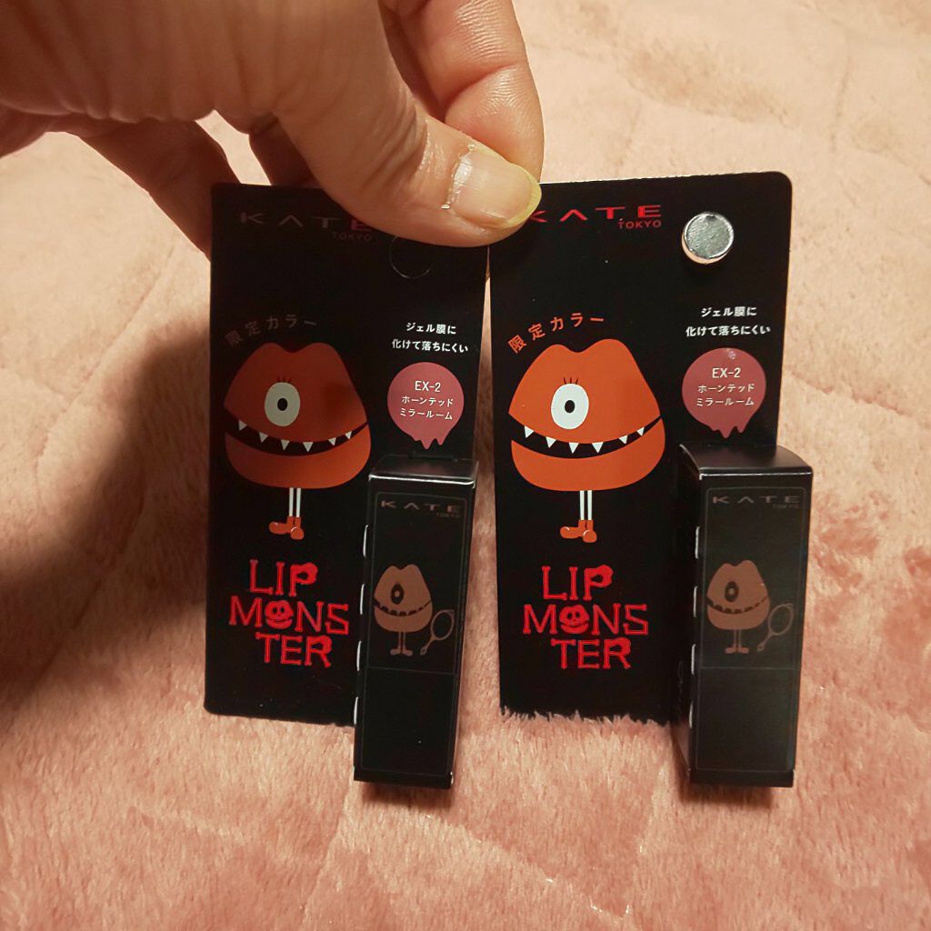 まさかのかぶりです😭皆さんよく載せてらっしゃる#KATE#EX-2ホーンテッドミラールーム#EX-3舞踏会の主役#EX-4マジカルミッドナイトショー#ミニリップモンスター近くのドラッグストアにてまずお一人様1本とあったのでホーンテッドミラール...