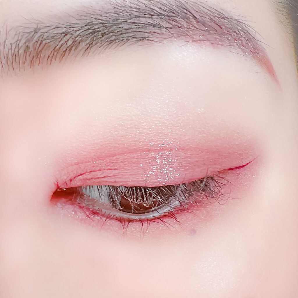 ピンクにグレージュも良いですね👌💗 今日は可愛らしい感じにしてみました💕 上下瞼黒目〜目頭側にラメを塗ってキラキラさせております🤩 目尻はマットのピンクを濃いめに重ねて💗 グレージュのアイライナーと相性◎