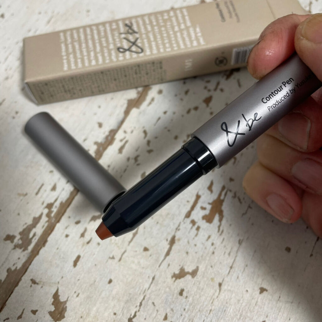 セザンヌのシェーディングペンシル(ウォームトーン)と&beのコントゥアペンの比較。セザンヌ(ウォームトーン)の方がグレーみのあるベージュ。&beは赤みブラウンで結構色味の差はある。伸びが良くて馴染ませやすいのは&be。&beはやわらかく、セザ...