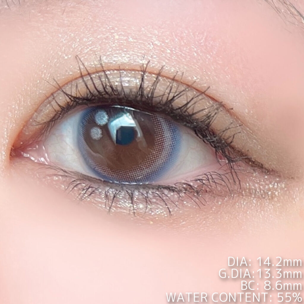 個性的なカラーからナチュラルなものまで幅広いラインナップで見てて楽しかったです! 透明感のあるブルーグレーが瞳に溶け込み、リアルなグレーアイに見せるレンズ。 透け感のある色味だけどしっかり発色するナチュラルハーフ系カラコン。着色直径も小さめなので着せ替え感があってかわいい。 N's COLLECTIONはレンズのつけ心地もすごく良くて他のカラーもとっても可愛いです!