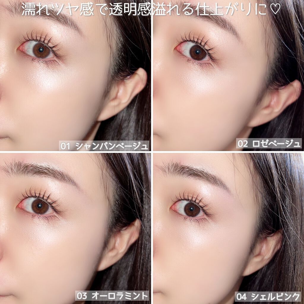 プチプラだとは思えないほどキラキラする綺麗なハイライト。ひとつ持っていて損はありません! オーロラミントは、肌につけると緑感はあまりなくて、透明感を出しながら発光してくれます。 シェルピンクはナチュラルに血色感も出しつつ馴染むカラーです
