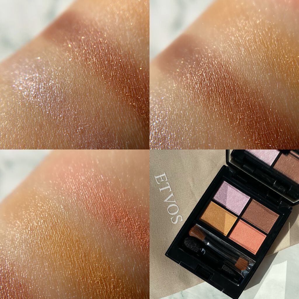 春らしい淡いピーチカラーが魅力的なETVOSのスプリングコレクション。可愛すぎて購入😍 ブルベでも使えるオレンジ🍊 左下はマットなピーチベージュ。淡いカラーで優しく見せてくれます。 全体的にはふんわりした柔らかい印象の目元になります。春メイクにぴったり💕