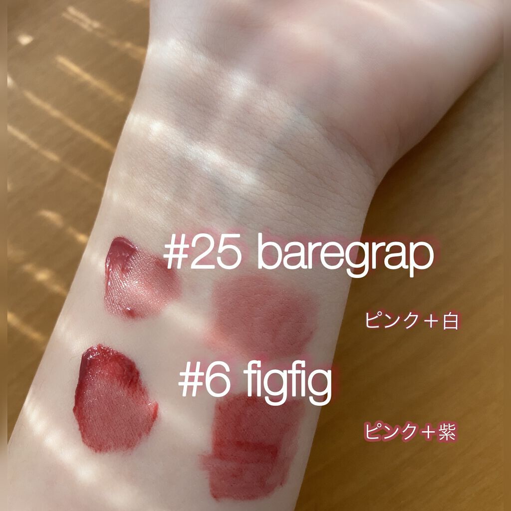 新パケはちゅるんとタンフルみたいで可愛い♡ ただ、チップがめちゃくちゃ私的に残念だった😢 比較カラーはBARE GRAPE! 同じ量をとれば発色もツヤ感も同じ仕上がり! チップは残念だったけど、改めて可愛いと思ったからまたたくさん使いたい!
