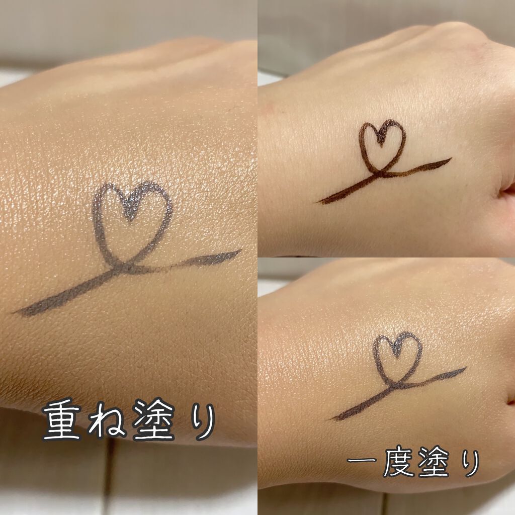 ジェルは柔らかくて描きやすい。ただ先は太いので細いライン描きたい人には不向き🥲 色味もちょうど良くてかわいい♡ ゴールドも色が綺麗で涙袋描きやすい! しかもウォータープルーフなので落ちません。結婚擦っても落ちなかった😂 安いし、オススメです❤️