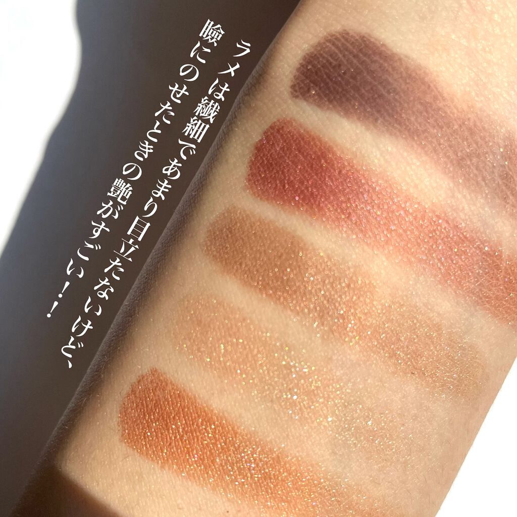 パレットをそれぞれ一言で表すと、 01 本命のブラウン ツヤ感が綺麗 02 駆け引きのピンク かわいいらしさナンバーワン。 03 秘密のオレンジ ヘルシーな印象 04 強がりのピンクグレージュ 涼し気な目元に 05 予感のアプリコット 華やかで盛れる 101 気ままのオレンジカーキ(限定) トレンド感 102 愛嬌のピンクブラウン ふんわりモテeye (←??) 103 釘づけのブラウンレッド ツヤ×マットのレイヤード○ 「みんなちがってみんないい」 という言葉がぴったりのパレットです、、!