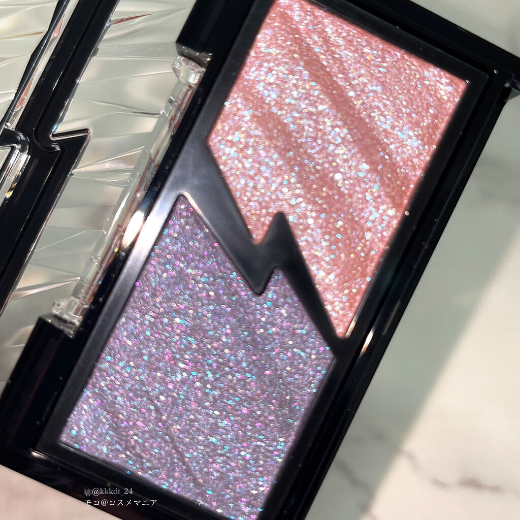 - 質感の違う2つの輝きで火花がクラッシュしたような発光感のある目元印象をつくるアイシャドウ。 まぶたにピタッと密着して、大粒ラメも落ちにくい処方設計。 繊細なカラーパールがきらめくエレクトリカルカラーと存在感のある大粒グリッターでまぶしい輝きを演出するフラッシュグリッターの2つの質感を掛け合わせて、輝き自由自在。 目元以外にも頬や鼻筋のハイライトに使える。