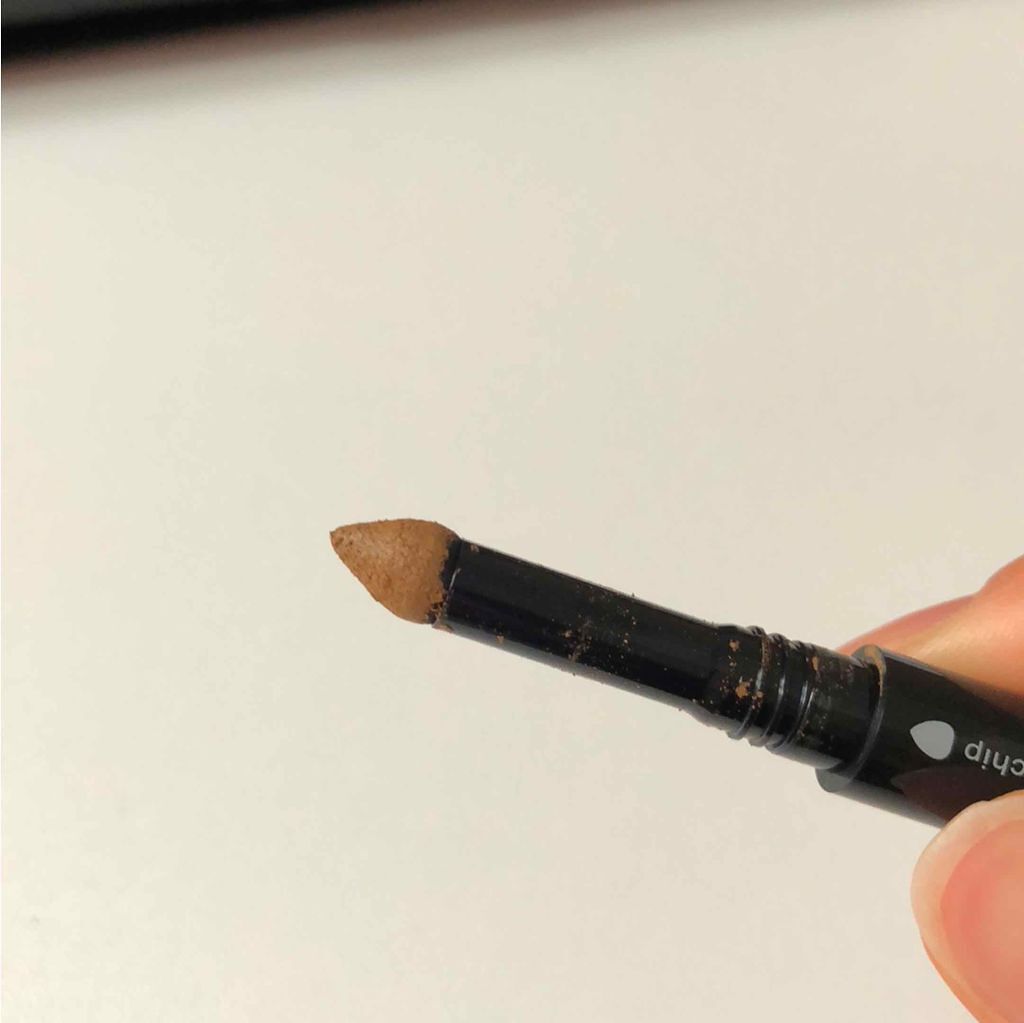 ダイソーのだ円芯アイブローペンシルのブラウンです。108円で購入しました。これは発色がとても良くて眉の他に涙袋の線を引くのにも使ってます。しかしポーチに入れているとキャップがすぐ取れるので芯が折れてることやブラシにホコリがついていることがあり...