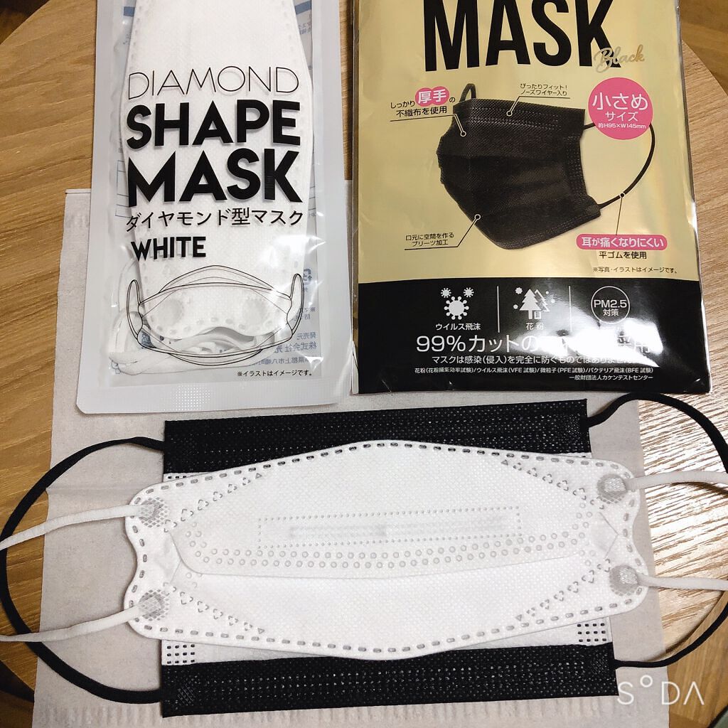 このタイプの小さめサイズ、求めてました‼️でもキッズ用なのでやっぱり小さい😭他のマスクとサイズ比べてみました。子供サイズのダイヤモンド型マスクは100均レモンで購入ベージュの3Dマスクはダイソーベージュの四角いマスクはレモン黒い小さめマスクは...