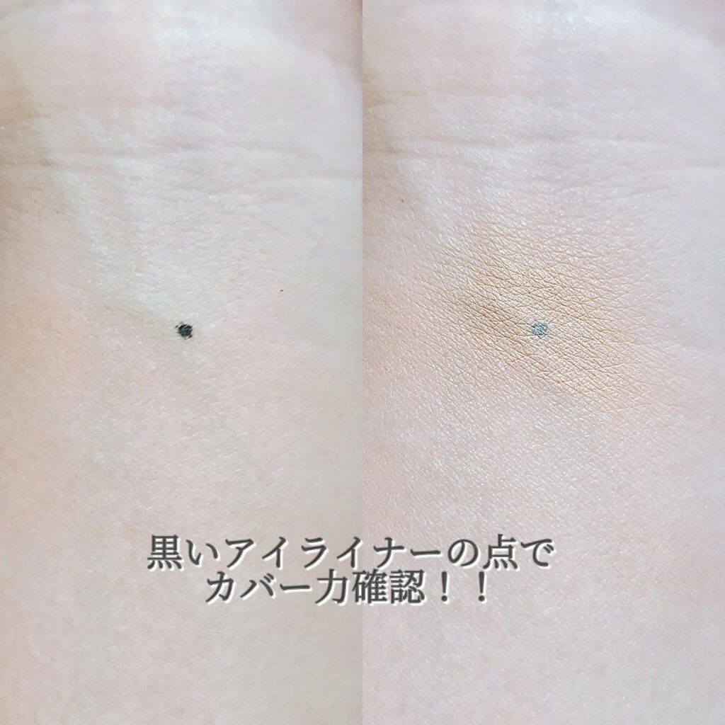 クッションを押すとジワ~っとファンデーションがつきます。 肌につけた感じはしっかりしたカバー力でつや感のある仕上がりです。 少し塗りムラを感じますがムラがでるところを手で馴染ませれば全然大丈夫💮 毛穴もしっかりカバーできています。 そして、密着力が高くマスクにもつきにくい! このつや感のある仕上がりが私はめっちゃ大好きです💖