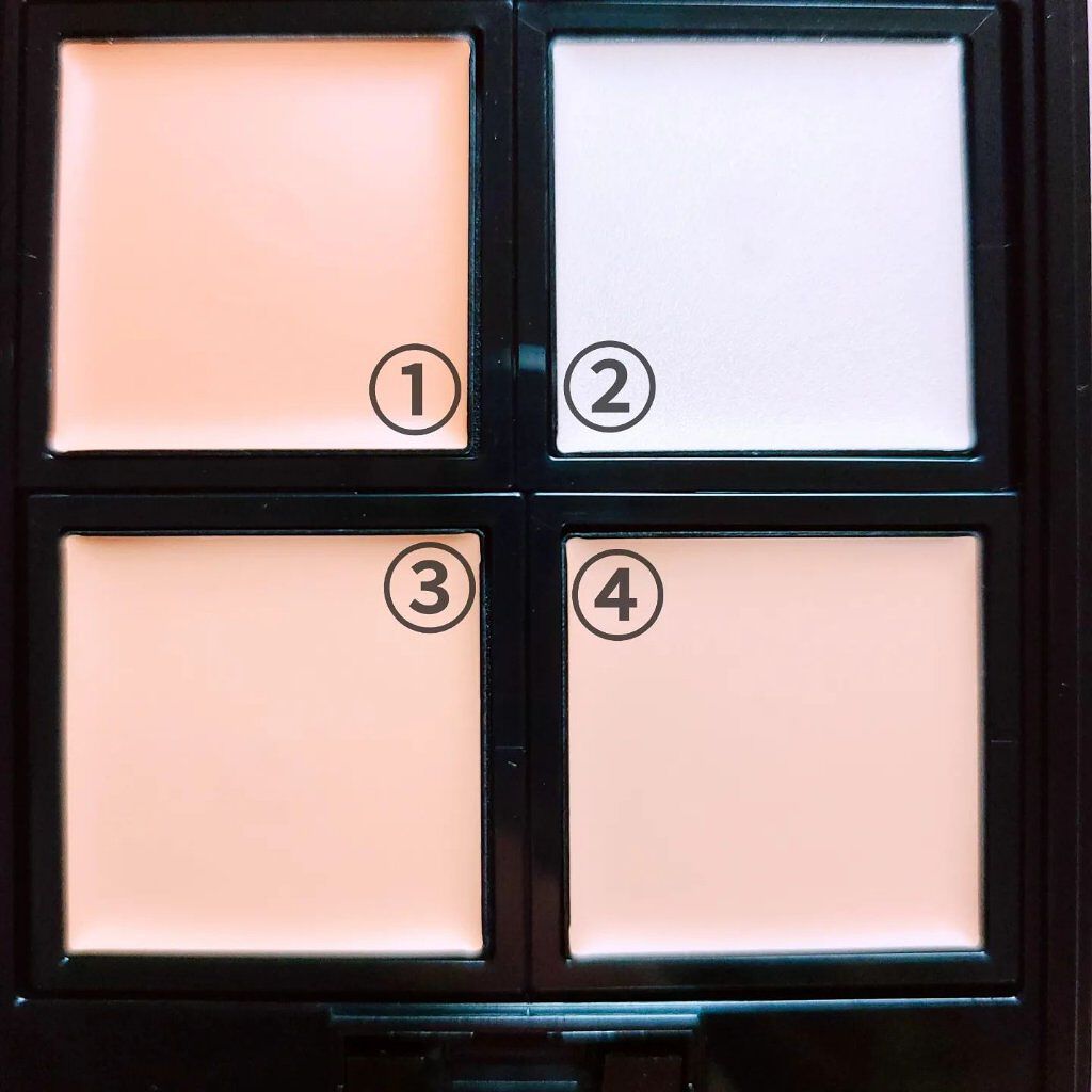 コントロールカラーとハイライトカラーがひとつになった4色のコンシーラーパレット🎨 濃いめシミ・クマは完全には隠せませんが密着度が高く崩れにくく色持ちがいいです 右上ハイライトカラーはナチュラルな仕上がりで上品な優しいツヤを演出してくれます☺️ 大きめの鏡が付いているのが嬉しいポイント🪞 崩れにくいコンシーラーをお探しの方におすすめです♪