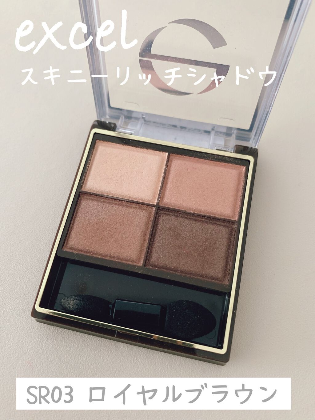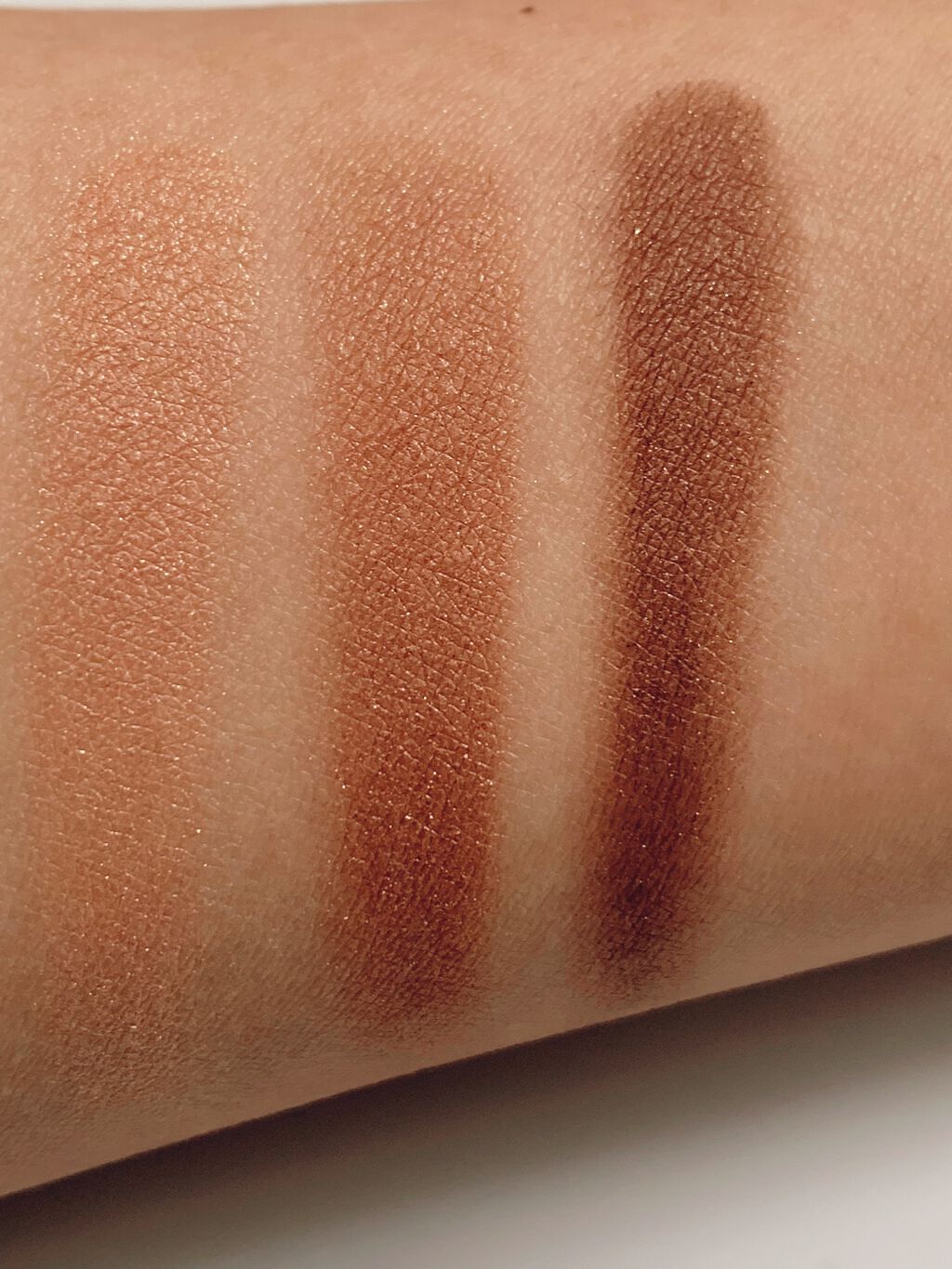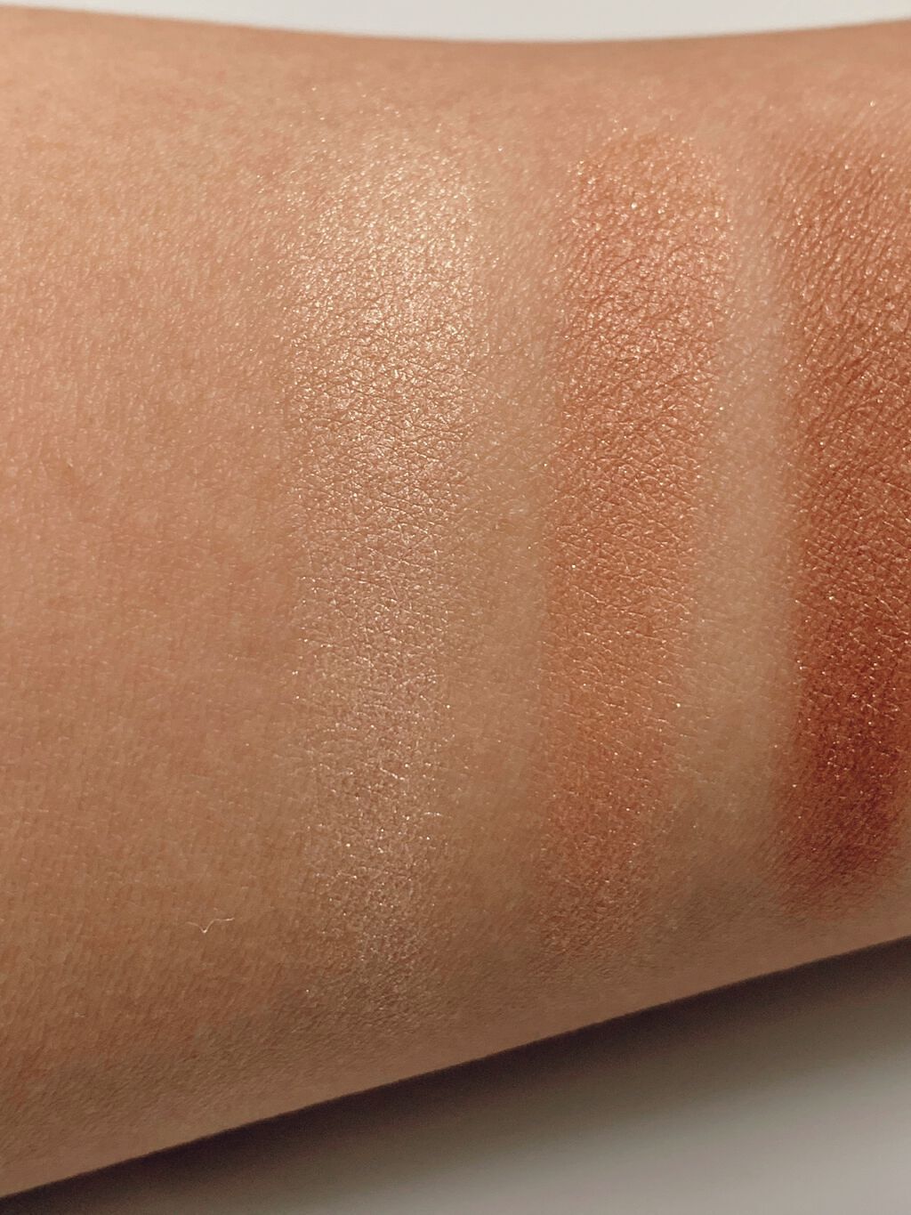 初めてのスキニーリッチシャドウ🫶 可愛い! しっとりした粉質で、粉飛びしにくかったです。 上段はツヤで、下段はパールがキラキラしているかな。SR03はほんのりピンクニュアンスとのことですが、私の肌だとピンクよりオレンジっぽく発色しました。 発色は濃すぎず、薄すぎず丁度いい感じ。 グラデーションをつくるのが簡単でした♡