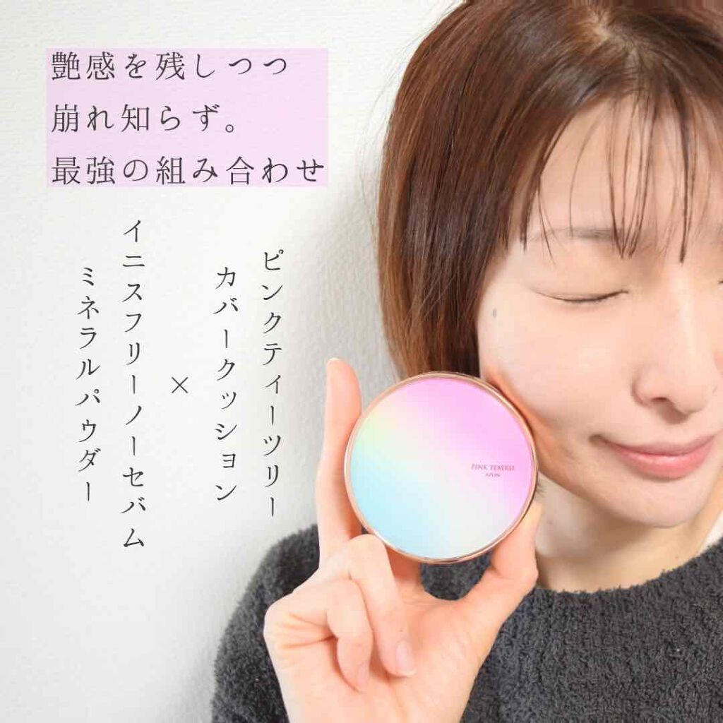アプリンのピンクティーツリーカバークッション使用しています。クッションファンデーションです。強力にカバーしながらも、肌に塗ると形成されるレイヤリングフィルム膜により水分の蒸発を防ぎ、乾燥のない肌へ導いてくれるそう。赤みやくすみをしっかりカバー...