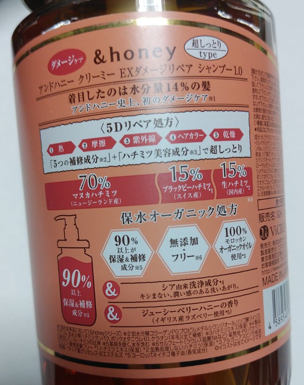 - 髪の水分量14%に着目し、ダメージを保水力でケアする「新ハチミツダメージケア」のシャンプー・ヘアトリートメント。製品の90%以上をハチミツや高保湿ヒアルロン酸などの保湿&補修成分で構成。 ハチミツのチカラと「5Dリペア処方」を導入し、 ・熱 ・摩擦 ・紫外線 ・ヘアカラー ・乾燥 の5つの要因によるダメージをケア。毛先まで超しっとりまとまる髪へ仕上げます。 無添加フリー処方※。 シャンプー:ジューシーベリーハニーの香り、ヘアトリートメント:フレンチベリーハニーの香り。 ※サルフェート、PG、パラベン、鉱物油、動物実験フリー