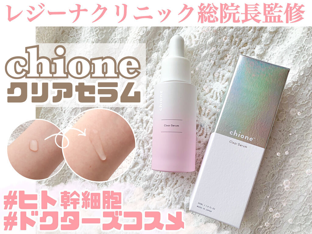 - ●次世代ヒアルロン酸「HAbooster®️(エイチエーブースター)※」 「HAbooster®️」は最新のヒアルロン酸研究から生まれた新素材の超低分子ヒアルロン酸です。化粧品最小クラスのヒアルロン酸と呼ばれており他のヒアルロン酸と比べて浸透力に優れています。保湿効果の他、シワ改善などアンチエイジングにも期待できます。 「HAbooster®️」以外には3種類のヒアルロン酸を配合しております。 →ヒアルオリゴ/ヒアルロン酸Na/ヒアロベール ●3種のビタミンC誘導体 ビタミンCそのものは不安定で壊れやすい性質のため肌への浸透ができません。しかしビタミンCは肌にとって欠かせない成分です。ビタミンCをしっかり肌に浸透させるために化学修飾し生み出されたのがビタミンC誘導体です。chioneクリアセラムには、ビタミンC誘導体が3種類配合されております。 →アプレシエ(APPS)/アスコルビルグルコシド(AA2G)/アミトースDGA ●3種のヒト型セラミド 肌のうるおいを保つために化粧品に配合されるセラミド。その中でも「ヒト型セラミド」は、保湿力が高く人間の肌と親和性があり、角層までの浸透力が高いことで知られています。ヒト型セラミドにもいくつか種類があり、 クリアセラムには3種のヒト型セラミドを配合しております。 →セラミドNP/セラミドNG/セラミドAP ●8つの無添加 パラベンフリー/エタノールフリー/シリコンフリー/紫外線吸収剤フリー/無着色/無香料/無鉱物油/石油系界面活性剤フリー