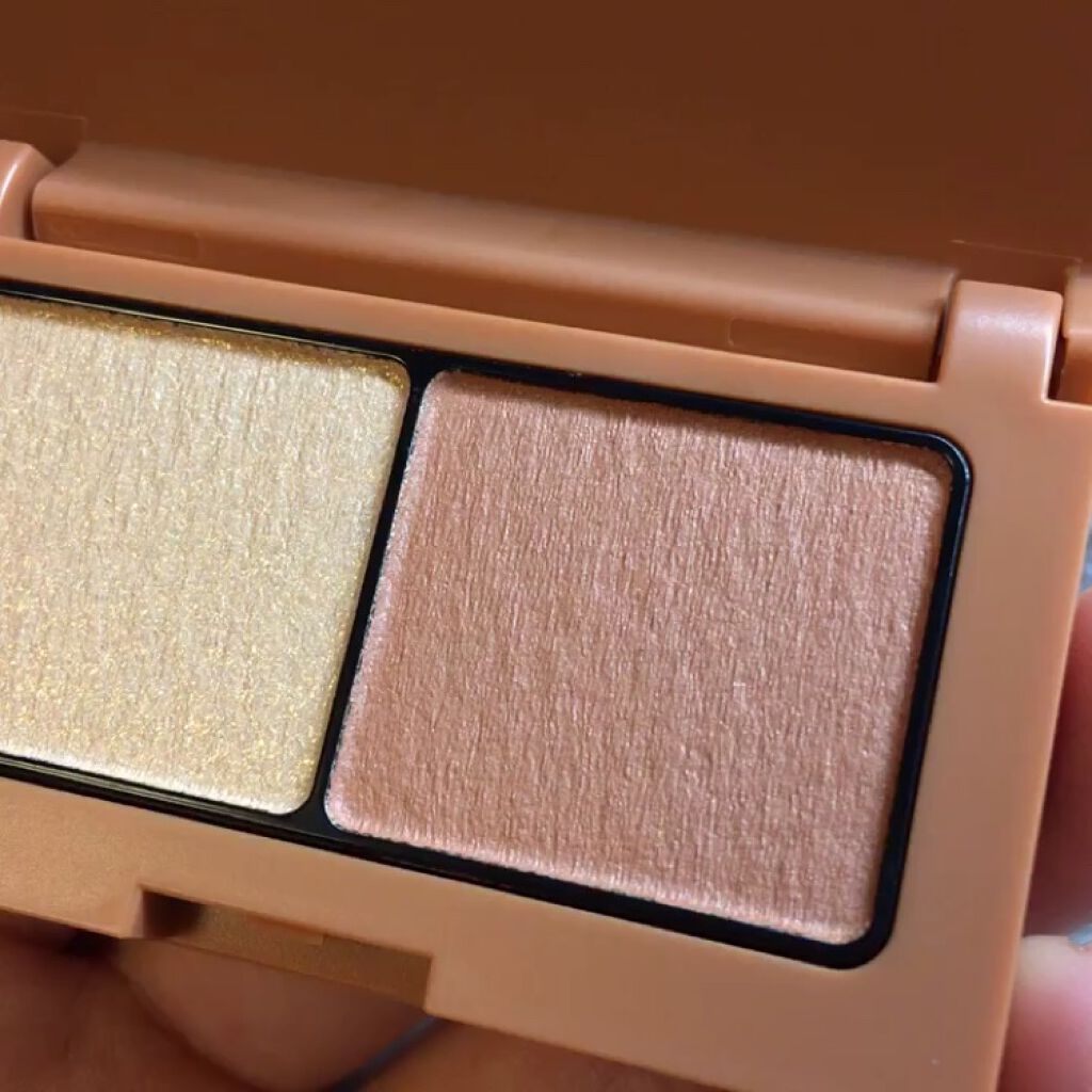 【密着感】ラメ飛びも少なくピタッと密着します◎ 【発色】左のカラーが思ったより肌なじみがよく2色でのグラデーションが超綺麗✨ 【良いところ】この2色でも他のアイシャドウで締めてもよく馴染むオレンジ系シャドウ◎ とにかく左のカラーがキラキラでかわいい!細かいラメなので派手すぎず使いやすい😍