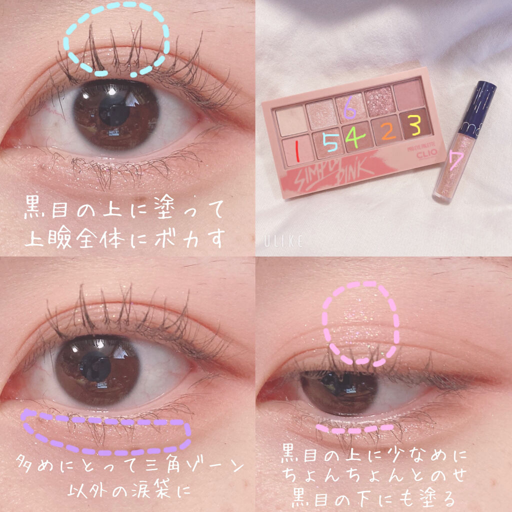 アイシャドウ👀・CLIOプロ アイ パレット01SIMPLY PINK グリッター✨・PERIPERAデュオ ポケット グリッター シャドウ03SALTED SUGARPLUM 涙袋のコンシーラー👧・キャンメイクカラーミキシングコンシーラーオレンジベージュ マスカラ💇♀️・rom&ndハンオールフィックスマスカラL02LONG ASH アイライン✏️・キャンメイククリーミータッチライナーダークブラウン・CEZANNE極細アイライナーEX20ブラウン