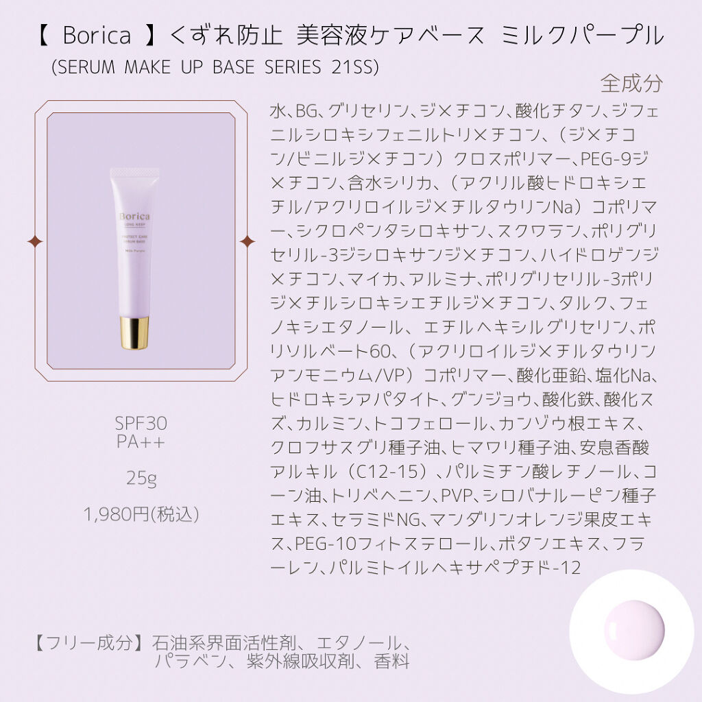 Borica 美容液マスクプライマー<クリアパープル> | 1,980円 |