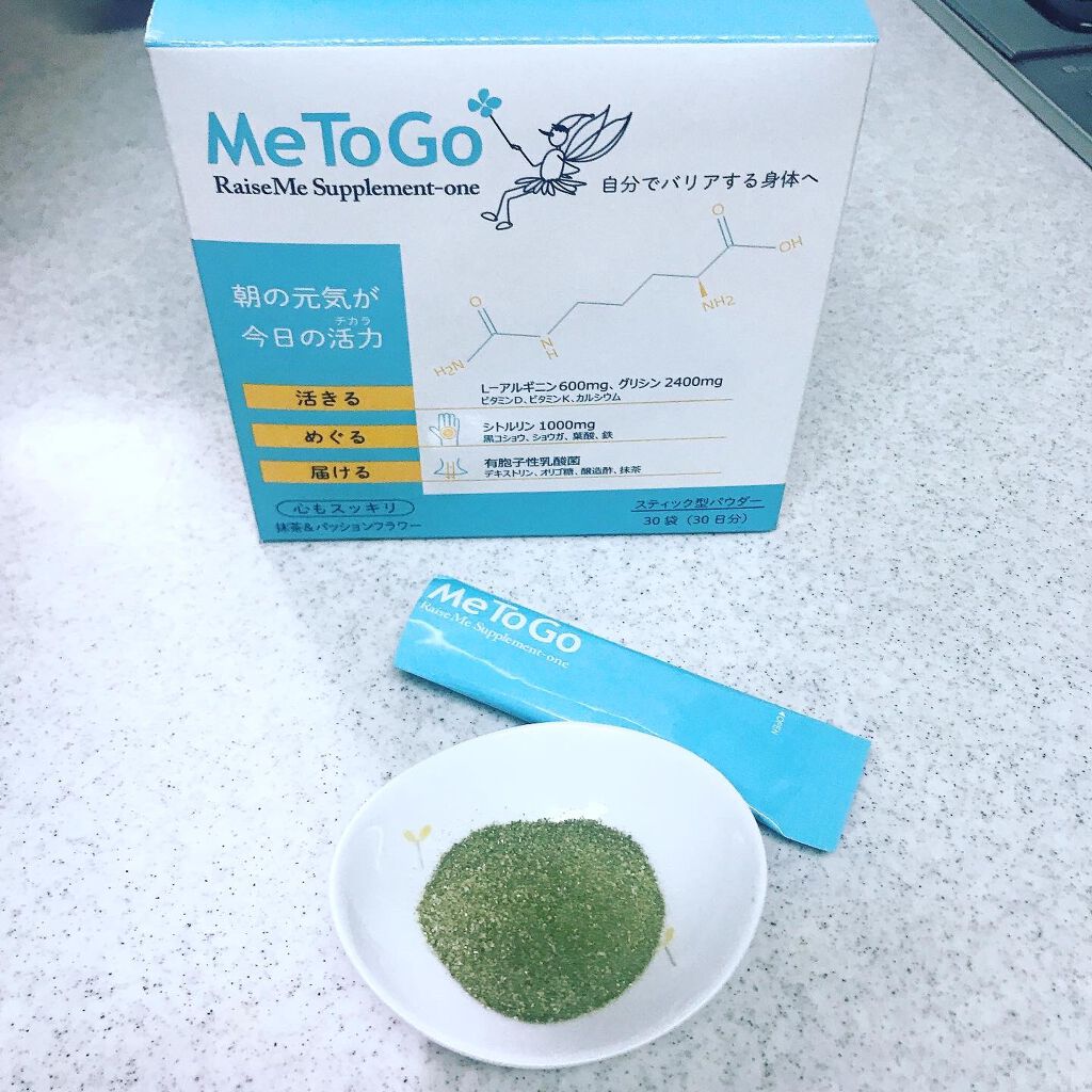 MeToGoRaiseMe Supplement-one (ミートゥーゴーレイズミーサプリメントワン)は、朝の元気と今日の活力をサポートするサプリなんです。 個包装になっているので200mlのお水に溶かすだけです。 楽です。飲む場所を選びません♡ 30袋で30日分です。 3つのアミノ酸であるアルギニン、グリシン、シトルリンを配合したサプリメントです。 気になる味は、さわやかな苦みと香りで気分がなんかスッキリします。 抹茶パウダー、各種ハーブ🌿であるパッションフラワー、ローズマリー配合。 抹茶パウダーは、「宇治茶」を使用しているので飲みやすいんです。 朝、夕方になるなんか最近疲れ気味なんですよね。 MeToGoRaiseMe Supplement-one (ミートゥーゴーレイズミーサプリメントワン) を飲み続けて改善できたらなぁと思います。