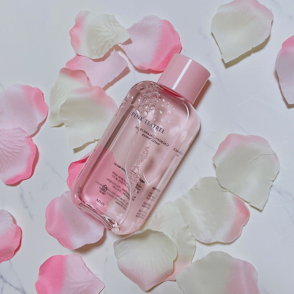 ティーツリーや、シカエキスを配合でニキビ、肌荒れ悩みをケアしてくれるトナー🩷 ピンク色は自然成分「ビタミンB12」本来の色だそう✨ サラサラテクスチャーで、さっぱりした使い心地✨