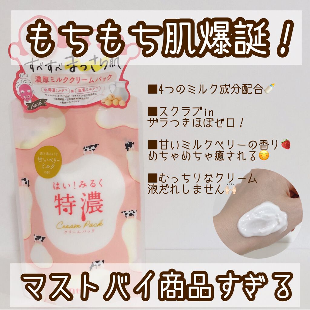 - 北海道ミルク*1とたっぷりのミルク美肌成分を配合した、やわらかでこっくり濃厚な洗い流すクリームパック。シルキースクラブ*2入りで透明感アップ。 すべすべまっさら肌に。 透き通るような甘いベリーミルクの香り。 *1ホエイ(牛乳)(保湿成分) *2セルロース(スクラブ成分)