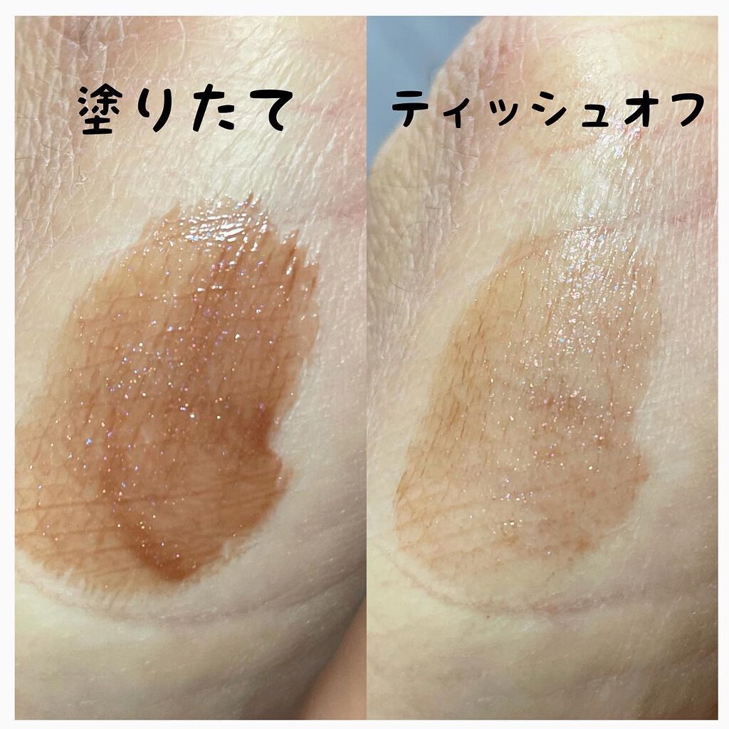 潤いがあって、ぷるんぷるん。 薄付きのピンク色で血色のいい唇に! そして保湿力も高め!!! 見た目よりもギラつき感が無く使いやすい! そのままでも可愛いけど、手持ちのリップの上につけても可愛い🤍 ラメはあまり付かないからラメ感が欲しい人には物足りないかな?
