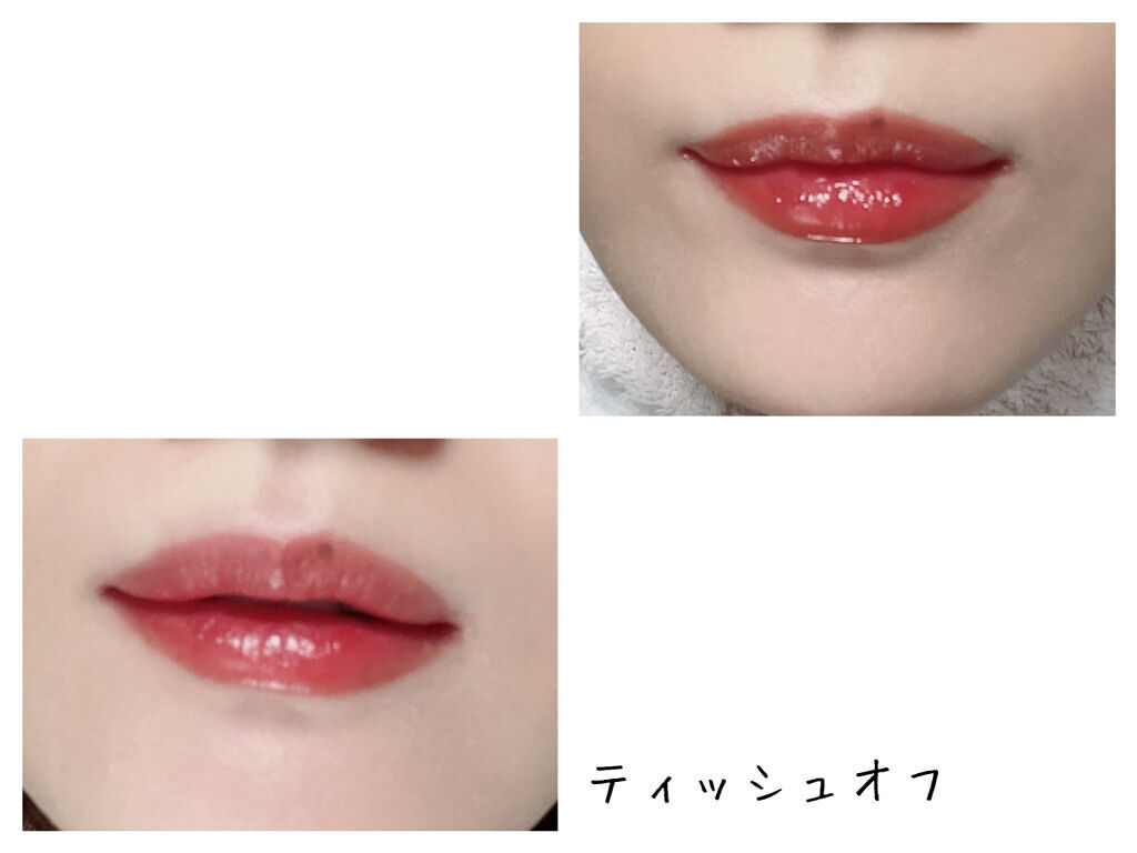 - ツヤ膜でLIPカラーを閉じ込める 塗ってから「5分」でかわいい唇完成♥ツヤがあふれ出るオイルinウォーターティント 水に対して約2倍のオイル成分を配合した「オイルinウォーター処方」 時間経過でツヤ膜がじゅわ~っとあふれ出し、 まるでグロスを重ねたような仕上がりに。みずみずしいツヤ感が持続します。 塗布後、時間経過(※)で色が定着して食べても飲んでも血色長持ち。 (※定着には個人差があります。弊社5分推奨) 高密着で唇に溶け込むように色づきます。 コップやペットボトルへの色移りがしにくくなります。
