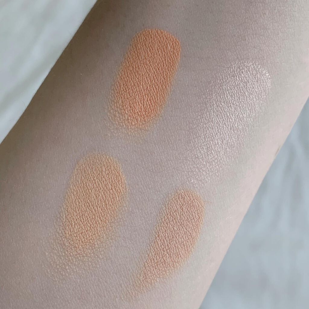 コントロールカラーとハイライトカラーがひとつになった4色のコンシーラーパレット🎨 濃いめシミ・クマは完全には隠せませんが密着度が高く崩れにくく色持ちがいいです 右上ハイライトカラーはナチュラルな仕上がりで上品な優しいツヤを演出してくれます☺️ 大きめの鏡が付いているのが嬉しいポイント🪞 崩れにくいコンシーラーをお探しの方におすすめです♪