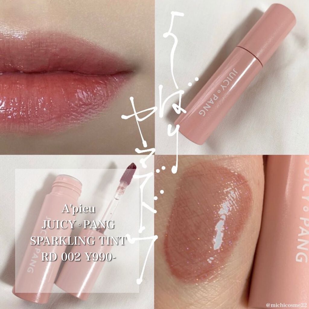 A’pieuジューシーパンスパークリングティントRD02よくばりヤマブドウめちゃくちゃお気に入りの大好きなティント♪とにかくこのカラーが可愛すぎて…!深みのあるボルドーにピンク、ブルー、ゴールドの微細なグリッターが輝いてナチュラルなツヤ感が出...