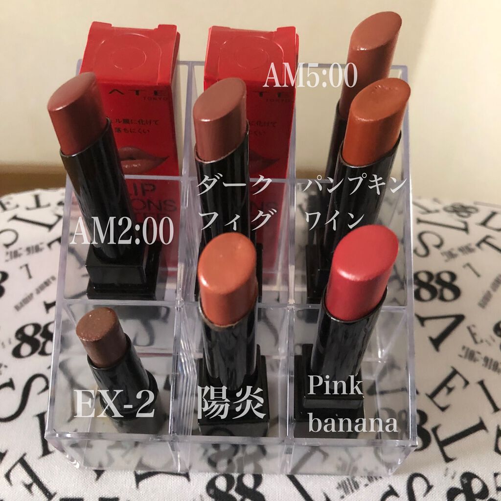 - <01 欲望の塊> テトライソステアリン酸ジペンタエリスリチル、トリ(カプリル酸/カプリン酸)グリセリル、オクチルドデカノール、ラウロイルグルタミン酸ジ(フィトステリル/オクチルドデシル)、ビスアルキル(C16-18)グリセリルウンデシルジメチコン、イソノナン酸イソトリデシル、水添ポリイソブテン、ラウロイルグルタミン酸ジ(オクチルドデシル/フィトステリル/ベヘニル)、パラフィン、合成ワックス、ダイマージリノール酸(フィトステリル/イソステアリル/セチル/ステアリル/ベヘニル)、マイクロクリスタリンワックス、水添マイクロクリスタリンワックス、ヒドロキシステアリン酸エチルヘキシル、トコフェロール、ホホバ種子油、オリーブ果実油、アーモンド油、(エチレン/プロピレン)コポリマー、ポリエチレン、ジメチコン、(+/-)(チタン/酸化チタン)焼結物、マイカ、ラウロイルアスパラギン酸Na、ラウロイルリシン、塩化亜鉛、酸化チタン、酸化鉄、水酸化Al、硫酸Ba、トリイソステアリン酸イソプロピルチタン、酸化スズ、ホウケイ酸(Ca/Al)、合成フルオロフロゴパイト、黄4、黄5、赤104(1)、赤201、赤202 <02 ピンクバナナ> テトライソステアリン酸ジペンタエリスリチル、トリ(カプリル酸/カプリン酸)グリセリル、オクチルドデカノール、ラウロイルグルタミン酸ジ(フィトステリル/オクチルドデシル)、ビスアルキル(C16-18)グリセリルウンデシルジメチコン、イソノナン酸イソトリデシル、水添ポリイソブテン、ラウロイルグルタミン酸ジ(オクチルドデシル/フィトステリル/ベヘニル)、パラフィン、合成ワックス、ダイマージリノール酸(フィトステリル/イソステアリル/セチル/ステアリル/ベヘニル)、マイクロクリスタリンワックス、水添マイクロクリスタリンワックス、ヒドロキシステアリン酸エチルヘキシル、トコフェロール、ホホバ種子油、オリーブ果実油、アーモンド油、(エチレン/プロピレン)コポリマー、ポリエチレン、ジメチコン、(+/-)(チタン/酸化チタン)焼結物、マイカ、ラウロイルアスパラギン酸Na、ラウロイルリシン、塩化亜鉛、酸化チタン、酸化鉄、水酸化Al、硫酸Ba、トリイソステアリン酸イソプロピルチタン、酸化スズ、ホウケイ酸(Ca/Al)、合成フルオロフロゴパイト、黄4、黄5、赤104(1)、赤201、赤202 <03 陽炎> テトライソステアリン酸ジペンタエリスリチル、トリ(カプリル酸/カプリン酸)グリセリル、オクチルドデカノール、ラウロイルグルタミン酸ジ(フィトステリル/オクチルドデシル)、ビスアルキル(C16-18)グリセリルウンデシルジメチコン、イソノナン酸イソトリデシル、水添ポリイソブテン、ラウロイルグルタミン酸ジ(オクチルドデシル/フィトステリル/ベヘニル)、パラフィン、合成ワックス、ダイマージリノール酸(フィトステリル/イソステアリル/セチル/ステアリル/ベヘニル)、マイクロクリスタリンワックス、水添マイクロクリスタリンワックス、ヒドロキシステアリン酸エチルヘキシル、トコフェロール、ホホバ種子油、オリーブ果実油、アーモンド油、(エチレン/プロピレン)コポリマー、ポリエチレン、ジメチコン、(+/-)(チタン/酸化チタン)焼結物、マイカ、ラウロイルアスパラギン酸Na、ラウロイルリシン、塩化亜鉛、酸化チタン、酸化鉄、水酸化Al、硫酸Ba、トリイソステアリン酸イソプロピルチタン、酸化スズ、ホウケイ酸(Ca/Al)、合成フルオロフロゴパイト、黄4、黄5、赤104(1)、赤201、赤202 <04 パンプキンワイン> テトライソステアリン酸ジペンタエリスリチル、トリ(カプリル酸/カプリン酸)グリセリル、オクチルドデカノール、ラウロイルグルタミン酸ジ(フィトステリル/オクチルドデシル)、ビスアルキル(C16-18)グリセリルウンデシルジメチコン、イソノナン酸イソトリデシル、水添ポリイソブテン、ラウロイルグルタミン酸ジ(オクチルドデシル/フィトステリル/ベヘニル)、パラフィン、合成ワックス、ダイマージリノール酸(フィトステリル/イソステアリル/セチル/ステアリル/ベヘニル)、マイクロクリスタリンワックス、水添マイクロクリスタリンワックス、ヒドロキシステアリン酸エチルヘキシル、トコフェロール、ホホバ種子油、オリーブ果実油、アーモンド油、(エチレン/プロピレン)コポリマー、ポリエチレン、ジメチコン、(+/-)(チタン/酸化チタン)焼結物、マイカ、ラウロイルアスパラギン酸Na、ラウロイルリシン、塩化亜鉛、酸化チタン、酸化鉄、水酸化Al、硫酸Ba、トリイソステアリン酸イソプロピルチタン、酸化スズ、ホウケイ酸(Ca/Al)、合成フルオロフロゴパイト、黄4、黄5、赤104(1)、赤201、赤202 <05 ダークフィグ> テトライソステアリン酸ジペンタエリスリチル、トリ(カプリル酸/カプリン酸)グリセリル、オクチルドデカノール、ラウロイルグルタミン酸ジ(フィトステリル/オクチルドデシル)、ビスアルキル(C16-18)グリセリルウンデシルジメチコン、イソノナン酸イソトリデシル、水添ポリイソブテン、ラウロイルグルタミン酸ジ(オクチルドデシル/フィトステリル/ベヘニル)、